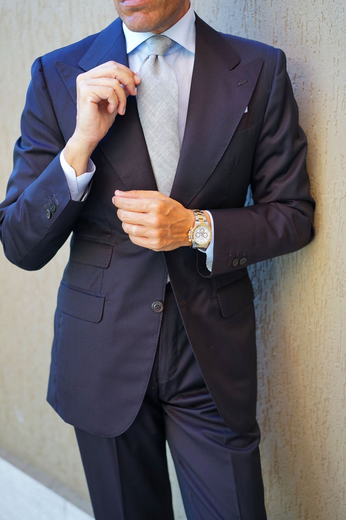 Selecting the perfect necktie is an art that allows your unique personality to take center stage. Beyond the mere color and pattern, your tie becomes a canvas upon which you paint your sartorial masterpiece, harmonizing it seamlessly with your suit and shirt. Keep in mind the season's influence; spring's arrival ushers in a palette of lighter, more vibrant hues, offering a chance to infuse your look with a touch of seasonal charm. But it doesn't stop with the tie alone; accessories play a pivotal role. A meticulously chosen tie bar, a set of elegant cufflinks, and a tasteful pocket square are not just embellishments; they're layers of personal style that contribute to the symphony of your outfit, amplifying the expression of your unique character and fashion sensibility.