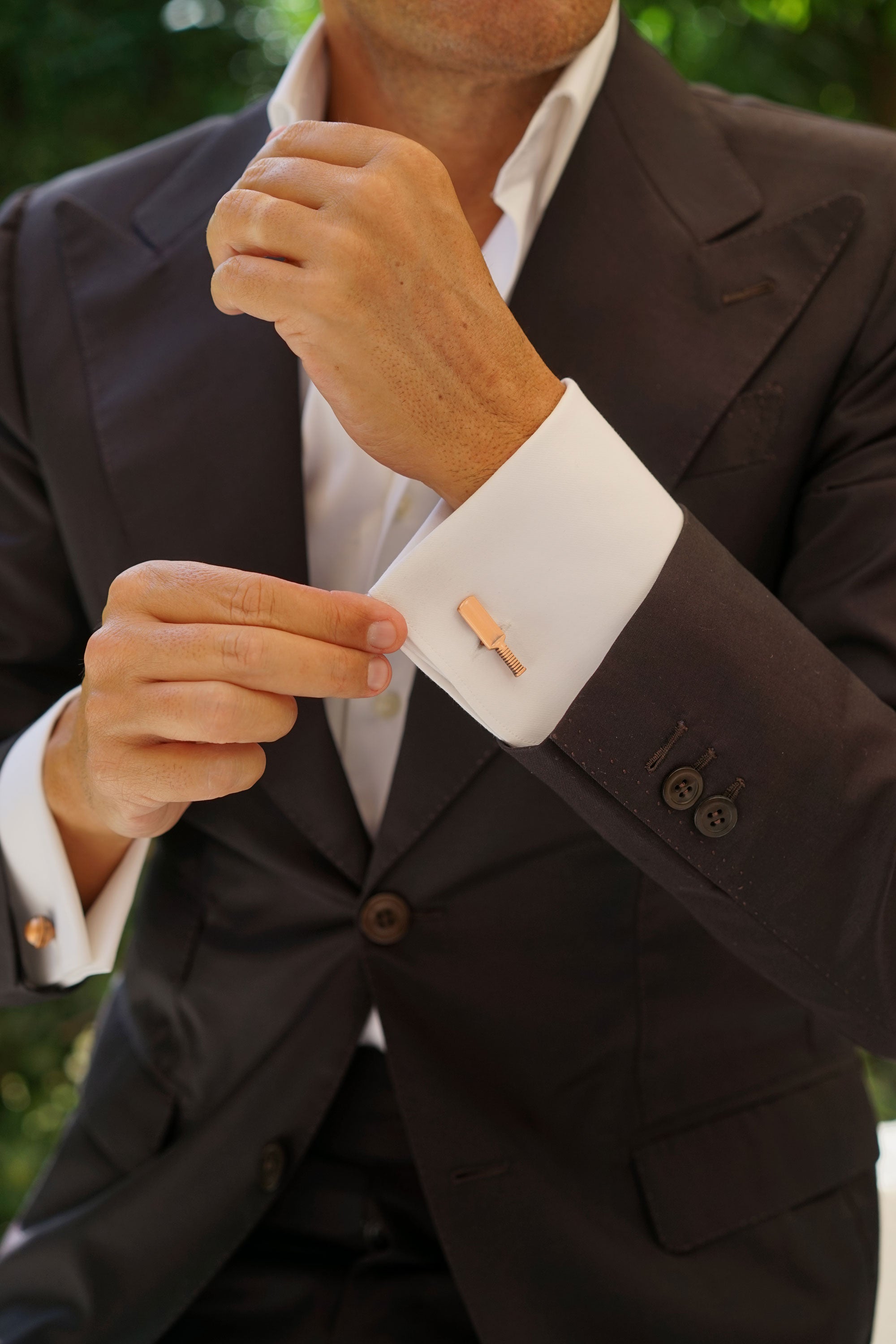Mixing and matching cufflinks is a fashion-forward move that works across various occasions, straddling the line between formal elegance and casual flair with ease. This approach to accessorizing not only showcases an individual's creative edge but also serves as a standout detail in both high-stakes social gatherings and everyday office scenarios. Opting for mismatched cufflinks can elevate your ensemble, making it notably more engaging, especially when aiming to echo the sophistication of a wedding outfit or inject a refreshing dynamism into standard business wear. The choice to diverge from conventional matching adds a layer of personal expression and can become the spark for engaging conversations, marking you as someone with a keen eye for distinctive style nuances.