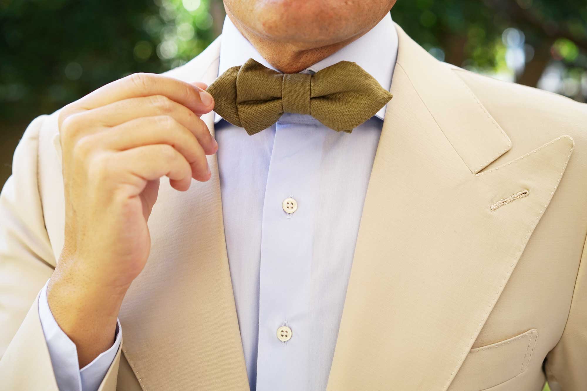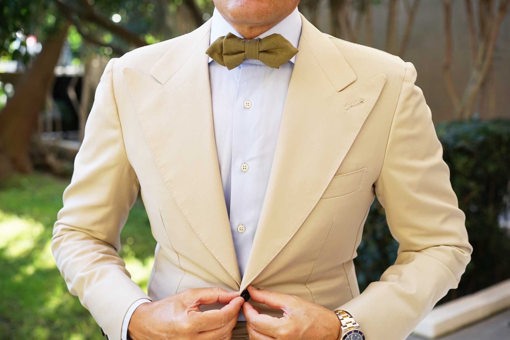OTAA’s adventurous Dry Green Khaki Linen Diamond Bowtie provides a breathable fabric that’s lightly textured to the touch. The decadent khaki green palette brings a refined feature to your formal tailoring and will uplift casual looks with a note of finesse. Hand-stitched and tailored to perfection, this superb diamond pre-tied bowtie emanates a high-quality presence as part of suit ensembles. Designed exclusively by the Brothers at OTAA.