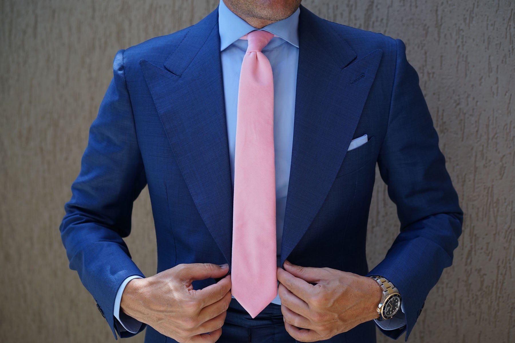 From OTAA’s signature hand-tailored line, the Pink Velvet Skinny Tie makes a dazzling statement. The superb soft pink tone of this Pink Velvet Thin Tie brings an ebullient perspective to your tailored suit arrangements. Immaculately complemented by a divine, plush velvet fabric, this Pink Velvet Skinny Tie adds a sublime element of texture to your formal wardrobe. Let its hand-stitched, lightly tufted fabric give your suits a wealth of luxury. This absolute showstopper thin tie will be the life of every occasion you wear it to. Designed exclusively by The Brothers at OTAA.