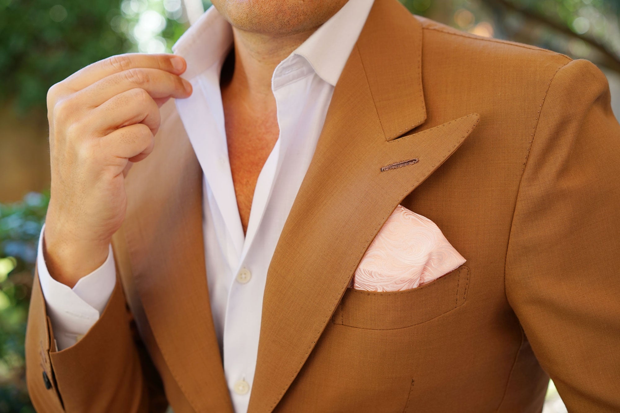 The Blush Pink Khamsin Pocket Square is a beautifully artistic expression, with rich satin textures expertly blended to capture the feel of the natural phenomenon after which it is named. The Khamsin is an arid wind occurring in Northern Africa, the name is derived from the Arabic, ‘khamsin’ or ‘hamsin’, meaning fifty, for the approximate period of days during which it blows. Although, nothing about this Handkerchief blows.