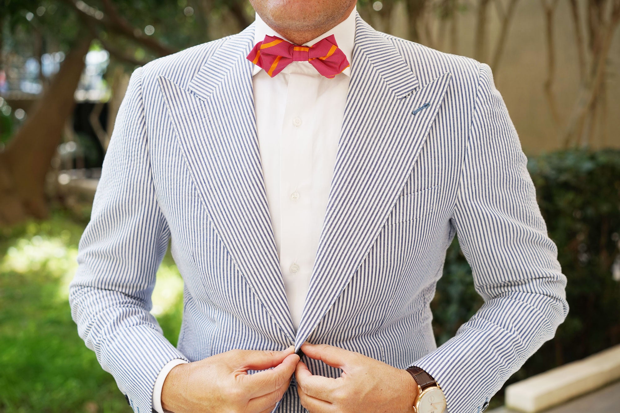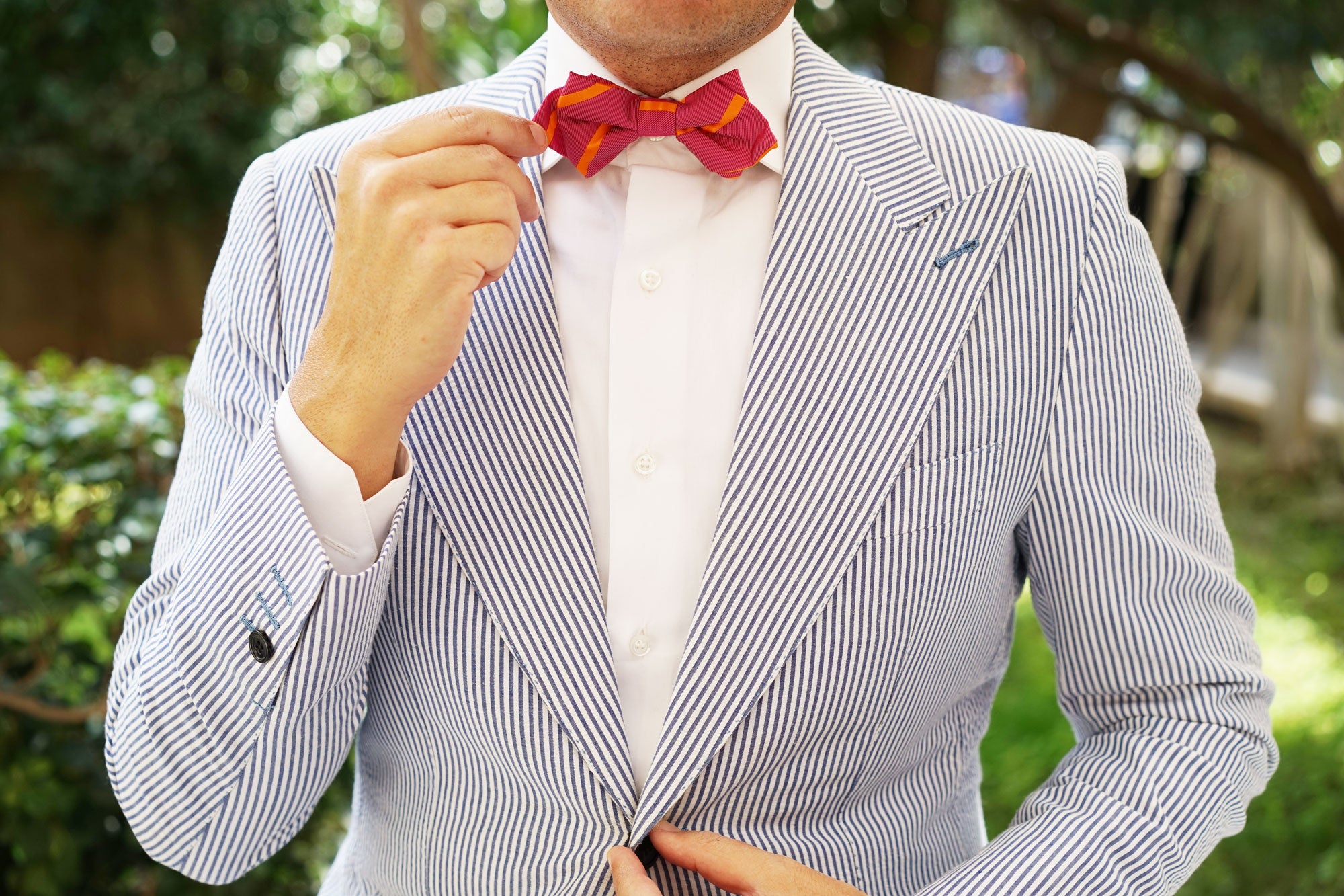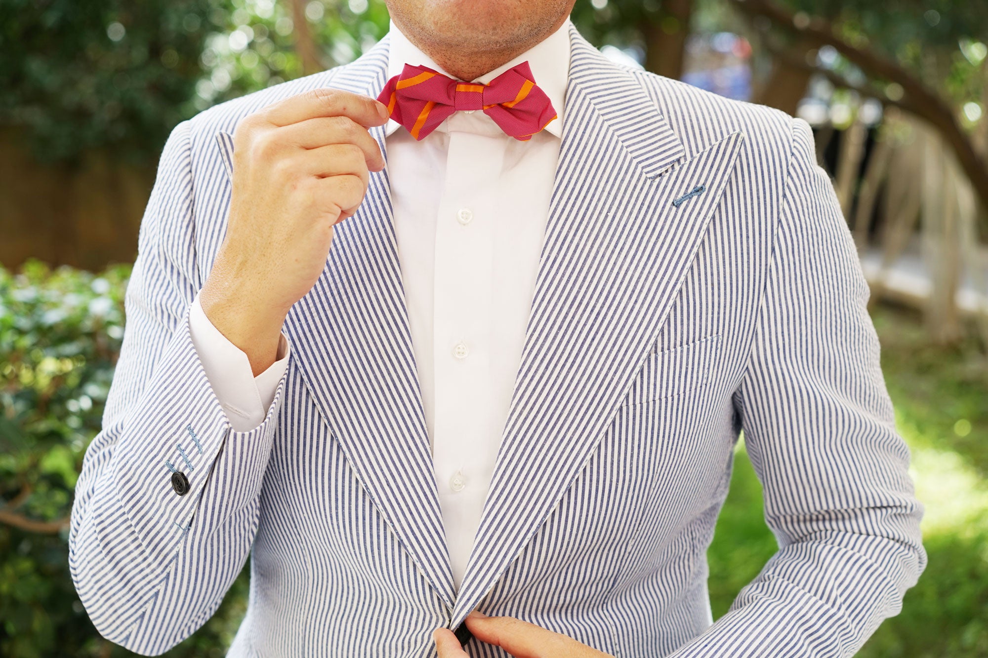 Let the Hot Pink with Orange Diamond Bow Tie add a sizzling asset to your wardrobe. There are few bow ties in our collection more vibrant and attention-grabbing than this; so if you want to make a bold statement, the Hot Pink with Orange Bow Tie will be your number one choice. Backed by OTAA's high quality philosophy, this diamond bow tie is tailored with a hand-stitched approach to grant you an asset of unsurpassed luxury. Let the dashing block colours of orange and hot pink complement your formal suits with memorability. It's suitable for formal occasions as well as your everyday wardrobe for the office. Designed exclusively by the Brothers at OTAA.