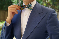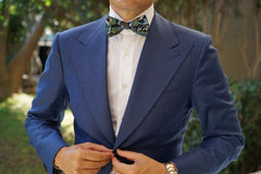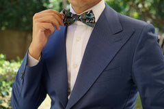 Patterned with an intricate floral paisley design, this impeccable bow tie will accent your suit with an accomplished tone. The indulgent black complexion is met with ebullient green, burgundy, turquoise and pink features for a flamboyant outlook. This bow tie has been constructed with elegance and offers a luxuriously plush fabric; giving your suits a high-quality staple. Designed exclusively by the Brothers at OTAA.