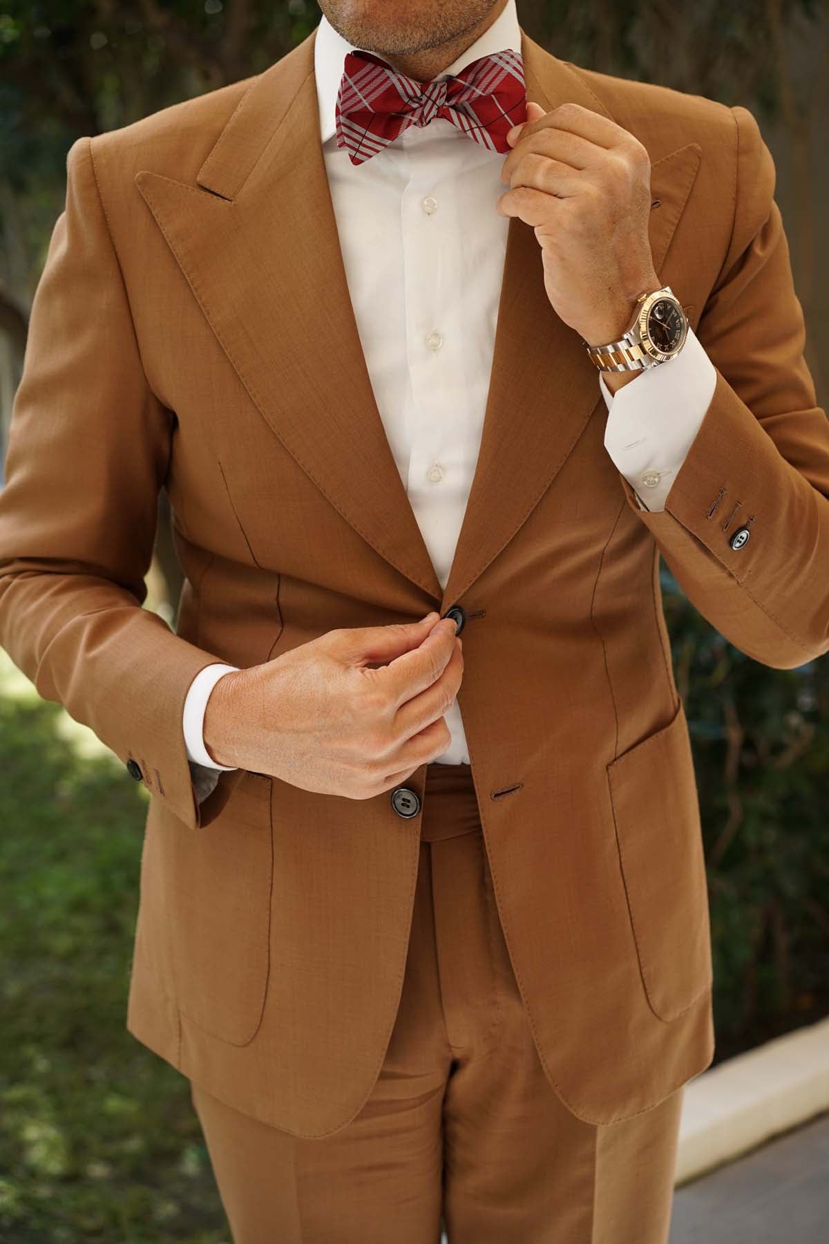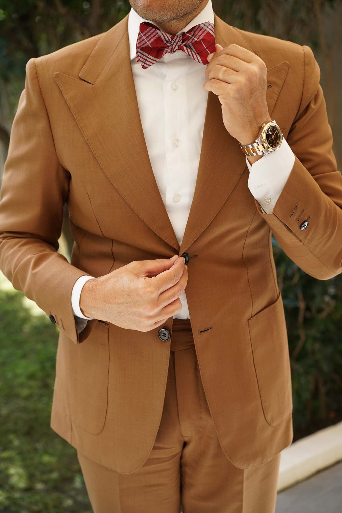 Scarlet Maroon with White Stripes Self Tie Bow Tie Self tied knot by OTAA