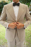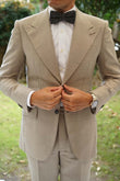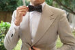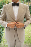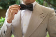 “For the Herringbone Raven Black Wool Bow Tie, it’s important to select the right little guy for the job,” the Brothers at OTAA explain as they wade through a paddock of 394 sheep. To make their wool designs, the brothers pat each sheep individually and note down their textural attributes before making their decision. For the Herringbone Raven Black Wool Bow Tie, they chose the wool of Mr Baarnabus. They whipped out their shearers and crafted this wool pre-tied bowtie by hand.