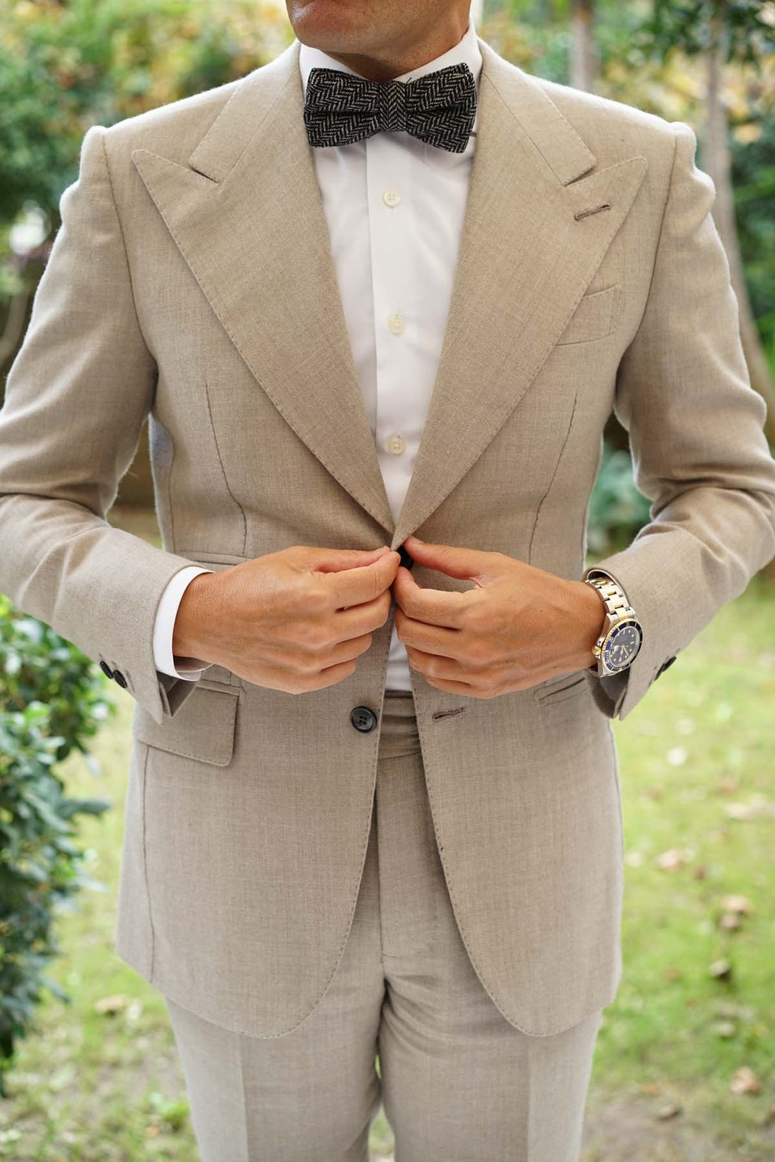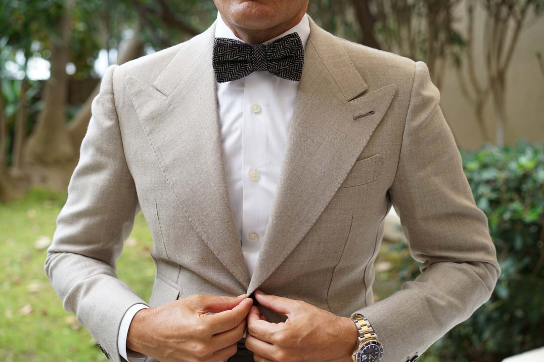 The eye-striking zig zag herringbone design offers an artisanal outlook to your daily attire. Finessed with a refined white and black palette, this pre-tied bowtie features multi-coloured speckles that are subtly embellished throughout. This Herringbone Raven Black Wool Pre-tied Bowtie was designed exclusively by the Brothers at OTAA and will provide a flamboyant accent to your workweek looks.