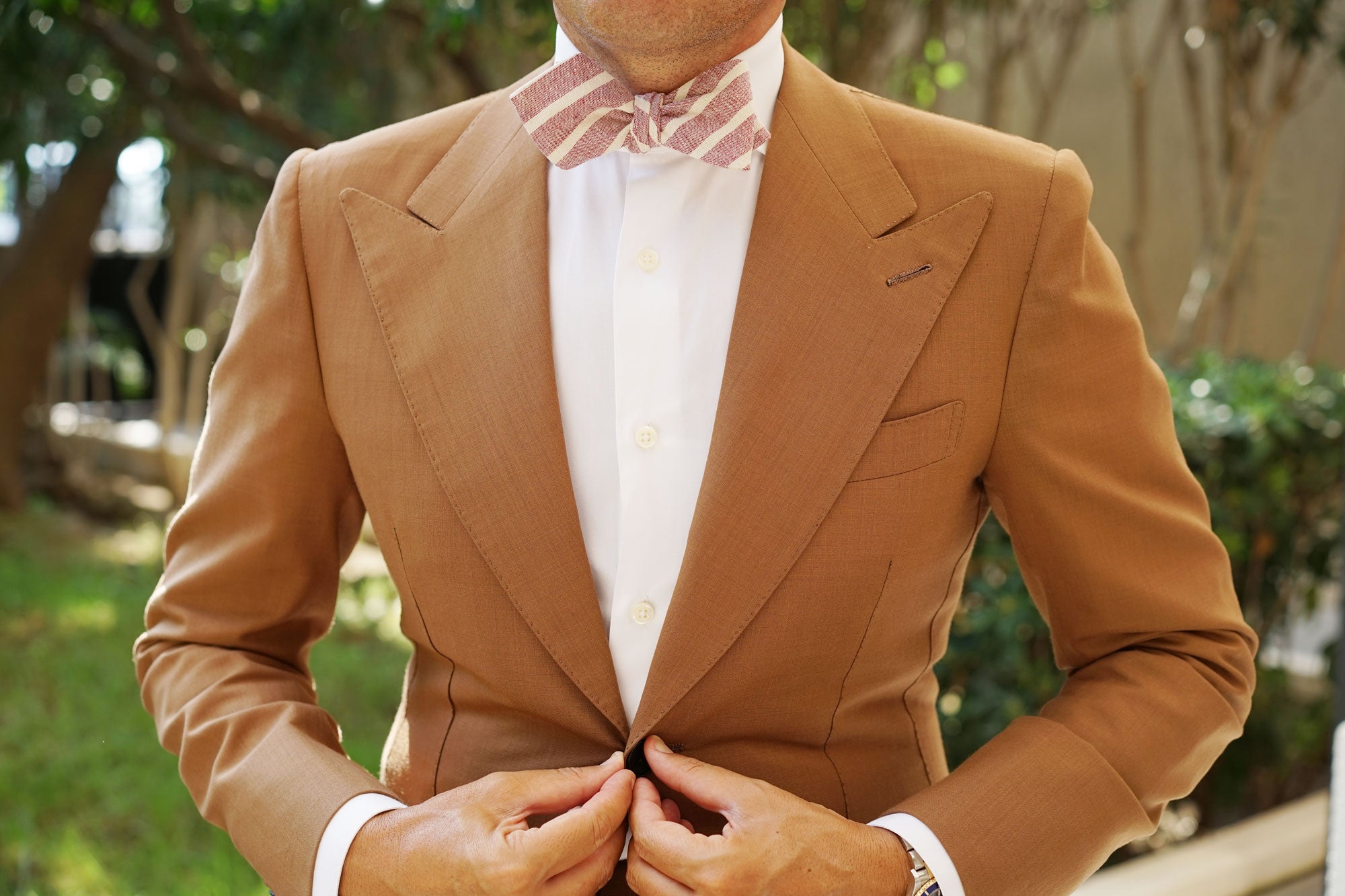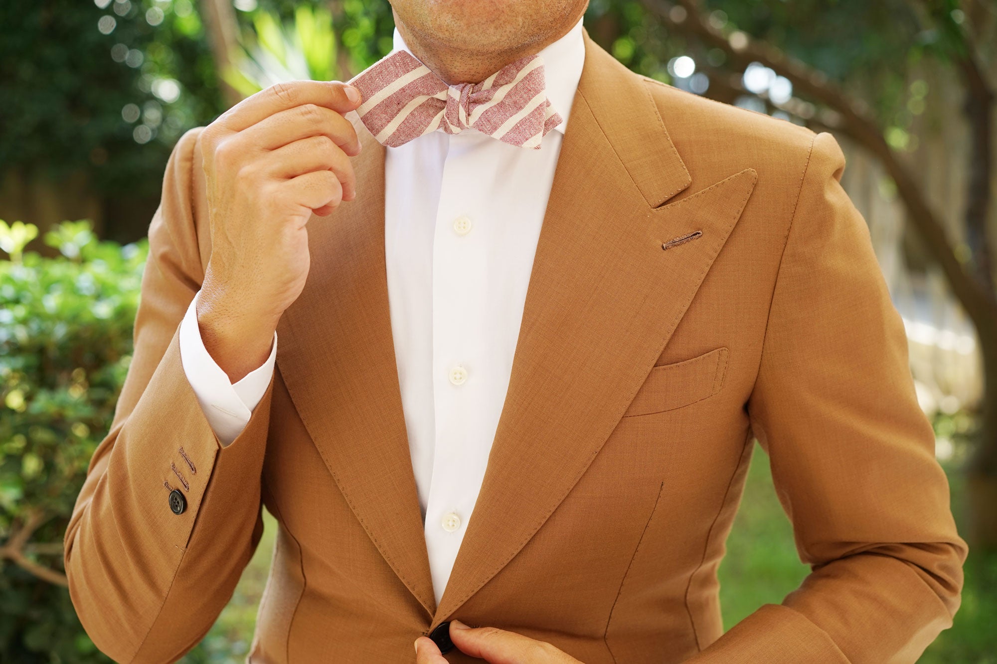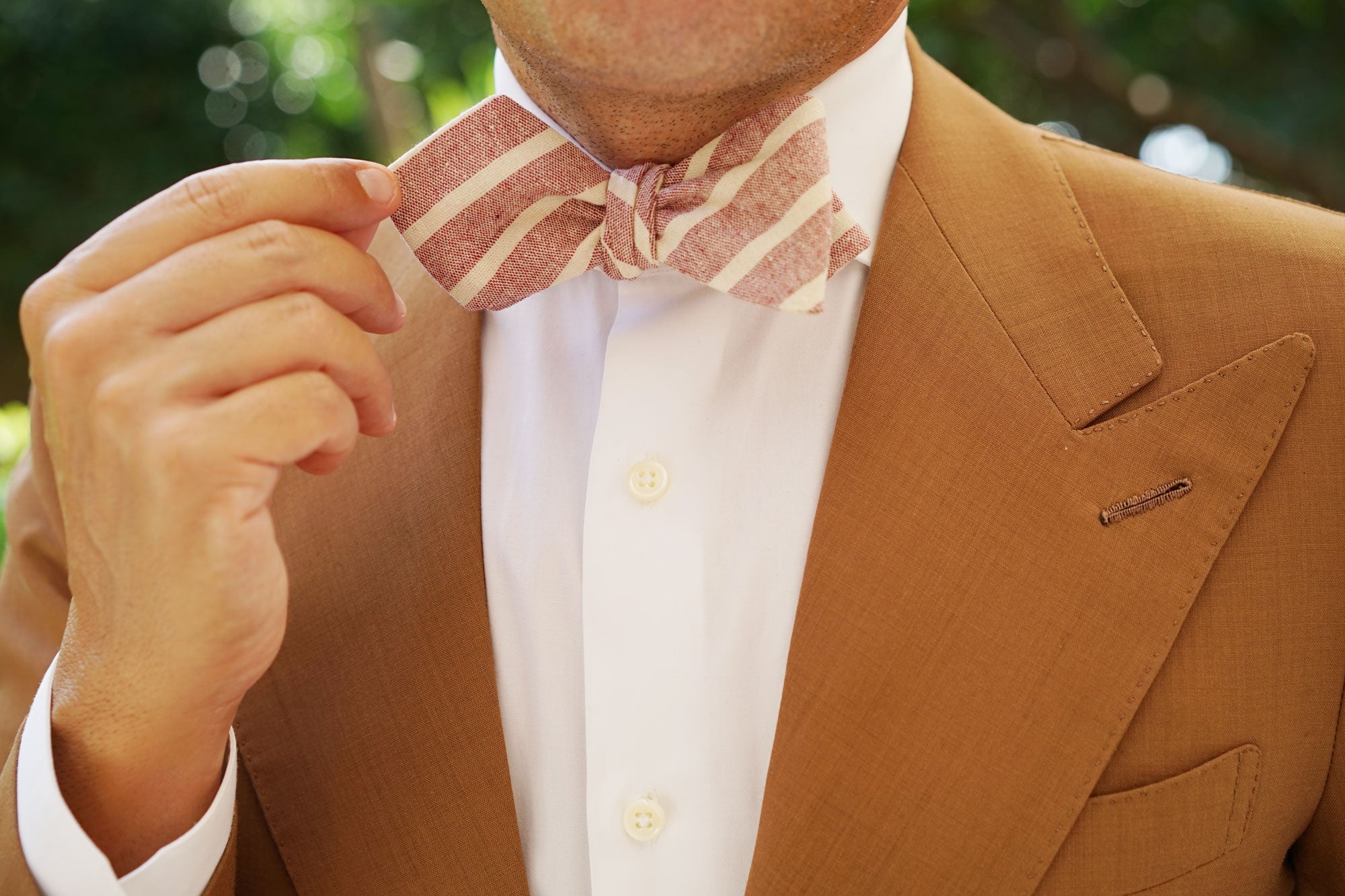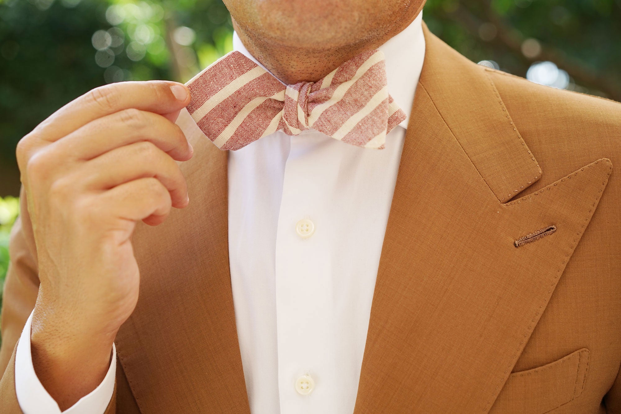 OTAA's Turkish Delight Red Stripe Linen Diamond Self-Tie Bow Tie maries quality with sophistication. According to legend, the Turkish delight was invented by a Sultan who wanted to impress his mistresses. Believing that desserts were the key to a woman’s heart, he ordered his chefs to come up with a clever dish that would satisfy their taste buds. Because of this, the Turkish delight was invented and it became the most coveted dessert to come out of noble kitchens. Impeccably tailored with a hand-stitched approach, OTAA’s Turkish Delight Red Stripe Linen Diamond Self-Tie Bow Tie is fit for nothing less than a Sultan; or a very stylish man.