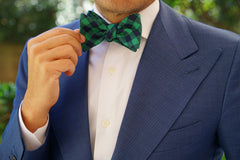 Elegantly constructed and hand-stitched approach, the Raw Green Gingham Linen Self Tie Bow Tie brings a high-quality presence to your everyday styles. Finessed with a checkered gingham design, this untied bow tie features green and dark blue hues for an eye-catching outlook. Designed exclusively by the Brothers at OTAA, wear this Raw Green Gingham Linen Untied Bow Tie to channel an accomplished tone in your boardroom and evening looks.
