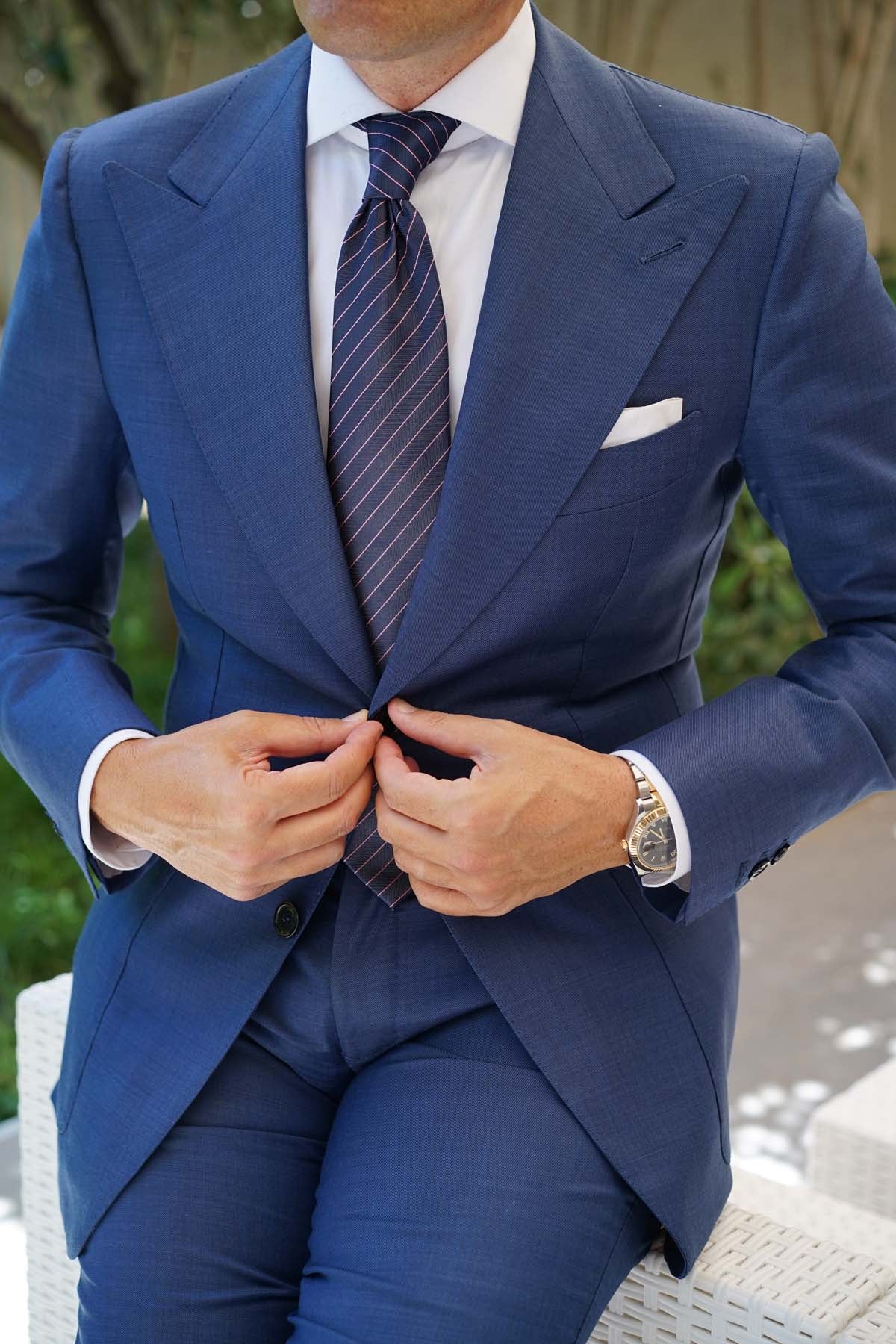 The sharp weave of the pink stripes is strewn diagonally across the blueberry surface of the fabric, adorned gently atop a herringbone pattern to give an ornately accentuated combination of dynamism and refined taste. Understated and confident, this hand-stitched, intricately woven showstopper boasts a smooth, soft feel to the touch, with a gently shimmering finish, ensuring the Pink Striped Navy Blue Herringbone Tie will be a magnificent standout for any occasion.