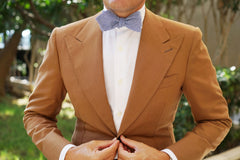 Santorini Blue Zig Zag Linen Fabric Self Diamond Bowtie