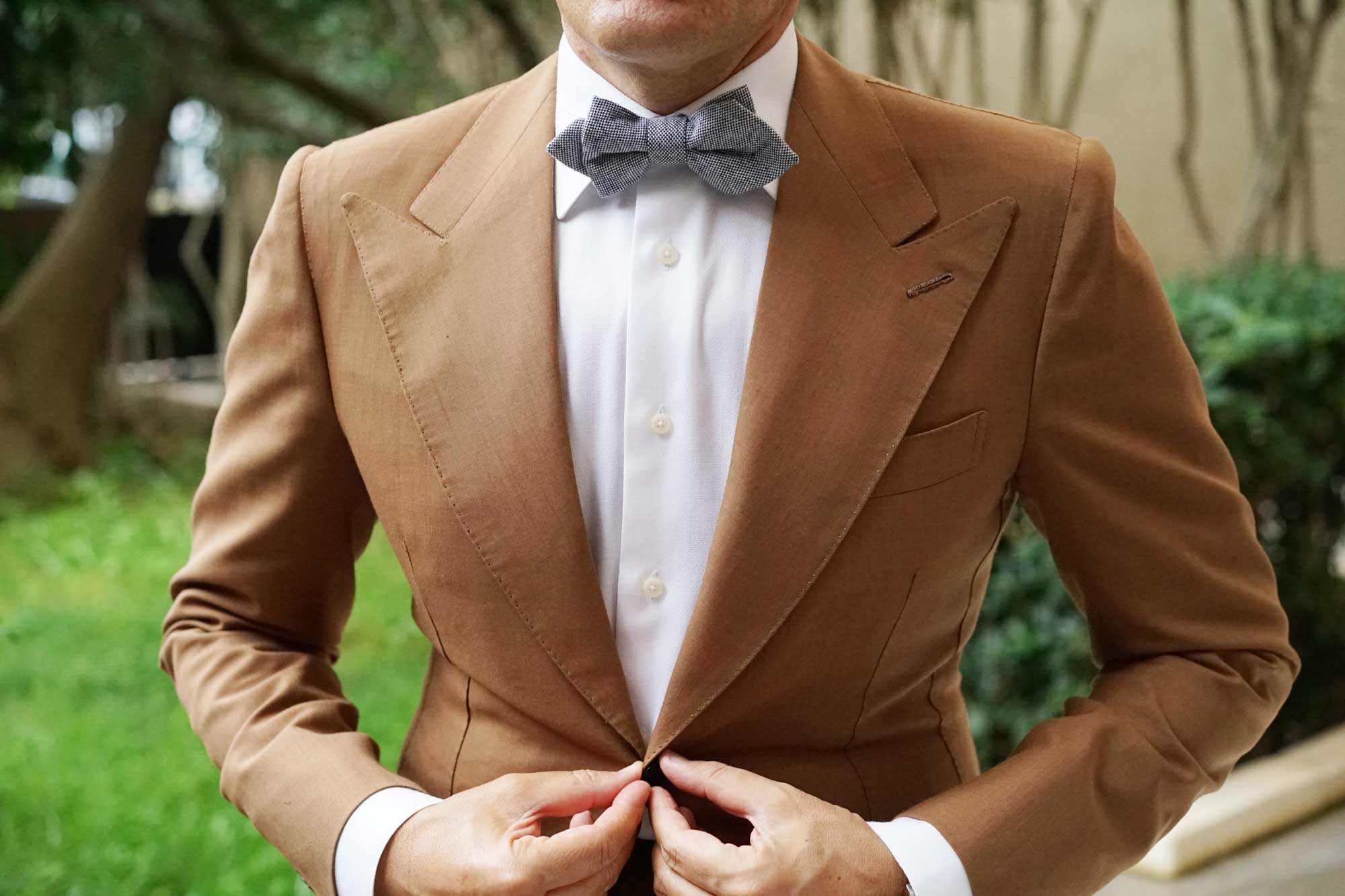From OTAA's signature linen line, the Navy Blue Tweed Linen Stitching Diamond Bow Tie makes an elegant statement. Beautifully combining navy blue and white stitching, the Navy Blue Tweed Linen Stitching Diamond Bow Tie brings a fresh outlook to your usual tailored wardrobe. Sporty, sharp and incredibly refined; its linen fabric will gift you the luxury of comfort with every wear. Backed by OTAA's high-quality philosophy, this in-house design is underpinned by hand-stitching and superb tailoring for your maximum confidence. Designed exclusively by the Brothers at OTAA.