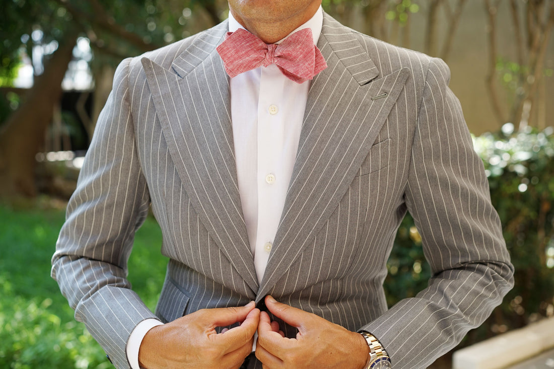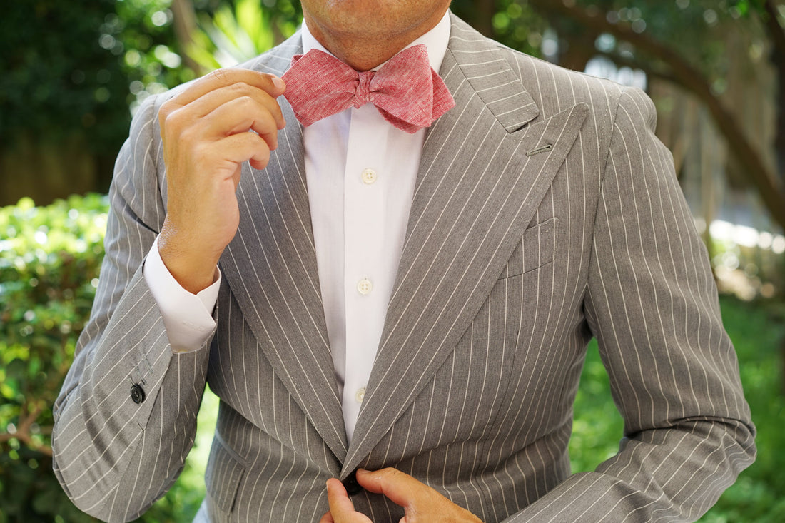 Light Red Chambray Linen Self Tie Diamond Bow Tie