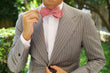 Offering a rustic, albeit highly refined perspective, the Light Red Chambray Linen Self Tie Diamond Bow Tie is a front-runner for mid week suits. Finely textured with a chambray weave, the Light Red Chambray Linen Self Tie Diamond Bow Tie is tailored from a superb linen cloth for a comfortable edge. Imbuing a light red complexion with delicate white intercepts, this diamond untied bowtie has all the right ingredients to complement your work day suits and evening wear alike. With a hand-stitched design and luxurious tailoring; the Light Red Chambray Linen Self Tie Diamond Bow Tie is as high quality as they come. Designed exclusively by the Brothers at OTAA.
