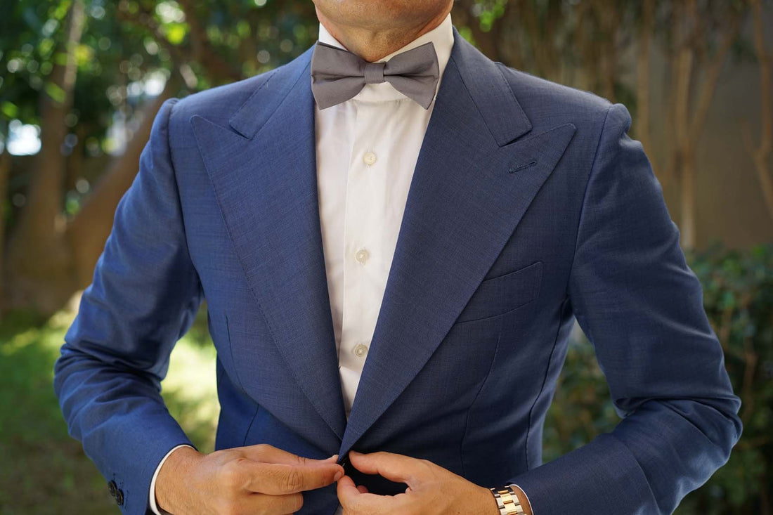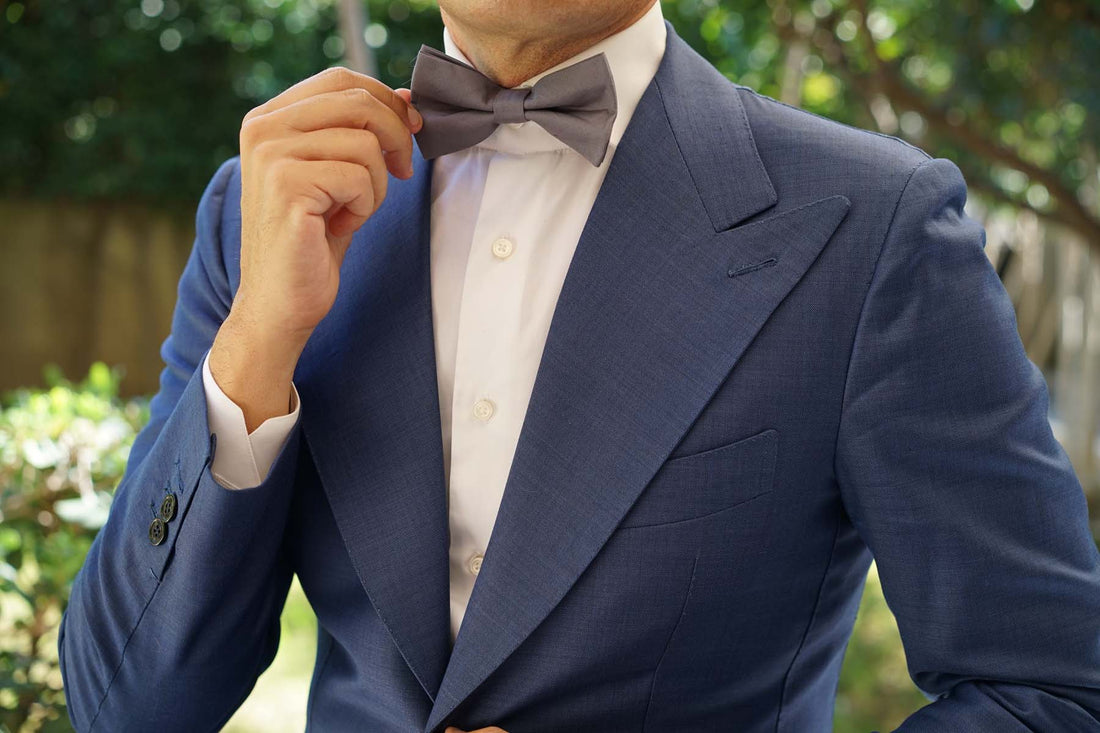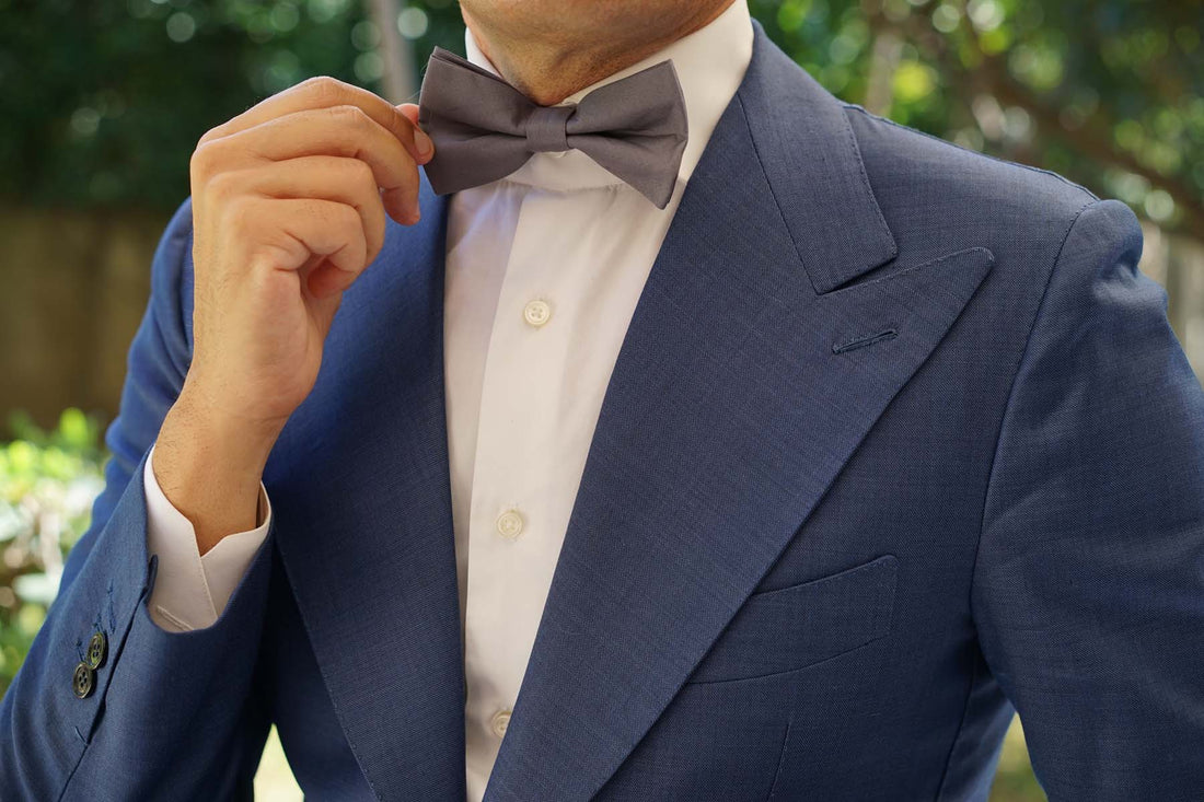 This Charcoal Grey Cotton Bow Tie is wonderfully sleek. OTAA's Charcoal Grey Cotton Bow Tie is the perfect casual accent that embodies a summertime weekend look. Keep classy yet casual with the OTAA pre-tied bowtie.