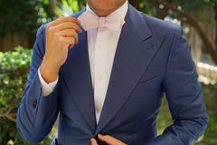 Blush Pink Slub Linen Self Tie Diamond Tip Bow Tie