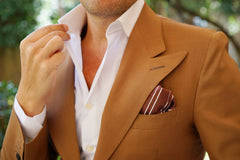 The Chocolate Brown Double Stripe Pocket Square will make for a delicious feast for the eyes with its sumptuous hazelnut tones and carefully crafted cut, fresh out of the oven at the Brothers’ Handkerchief factory. The connoisseur’s choice, this marvellous design will have onlookers doing a double-take and thanks to a jaunt the Brothers took to a fabled confectioners emporium, where they were able to track down the definitively perfect shade of brown, this stellar piece has been released to the world at large.