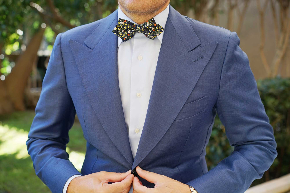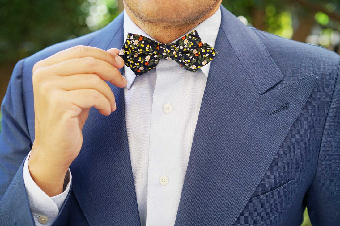 The indulgent navy palette of this diamond pre-tied bowtie is met with green, yellow, orange and white highlights for an artistic appeal. Beautifully decorated with a floral design, the Anemone Floral Diamond Pre-Tied Bowtie offers makes an elegant asset to your evening looks. Stitched by hand and magnificently tailored from cotton, the sleek style of this diamond bow tie is met with superior quality. Designed exclusively by the Brothers at OTAA.