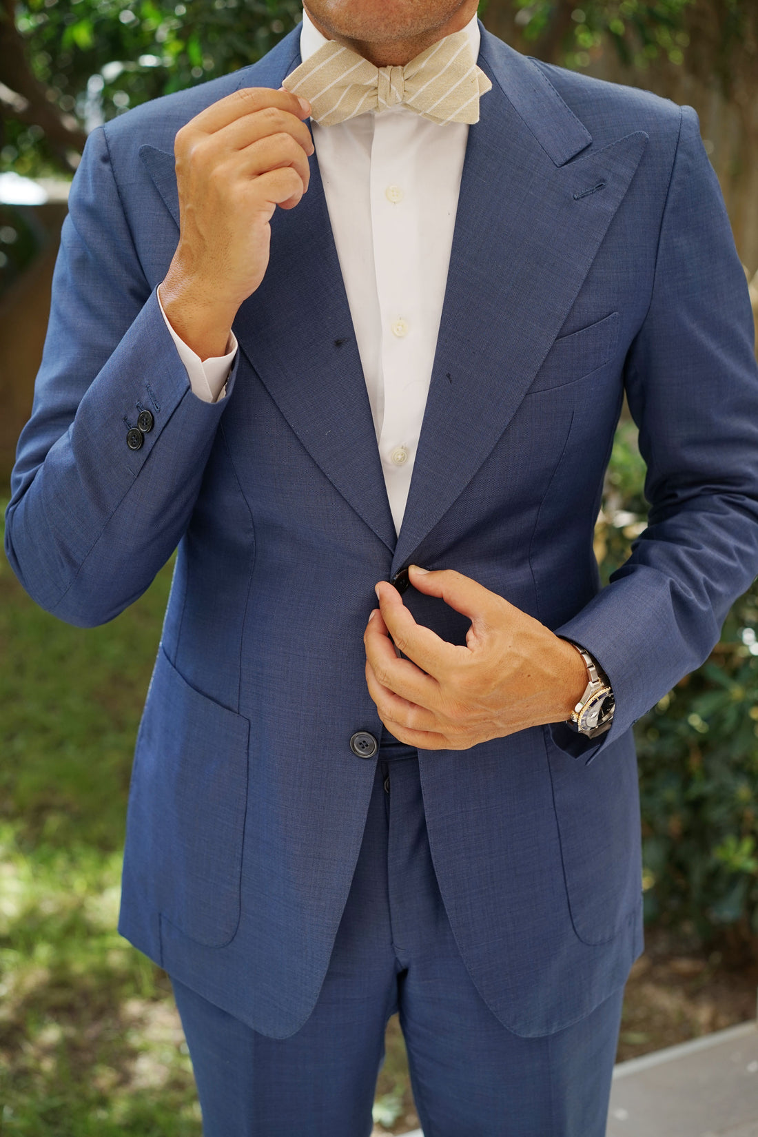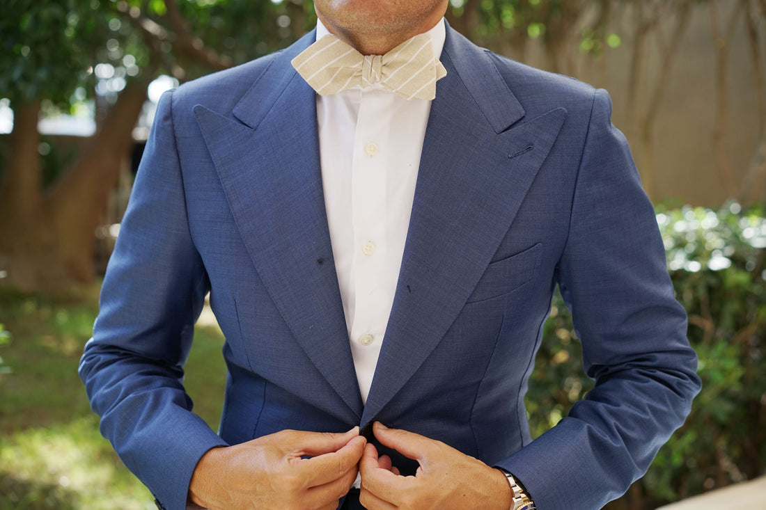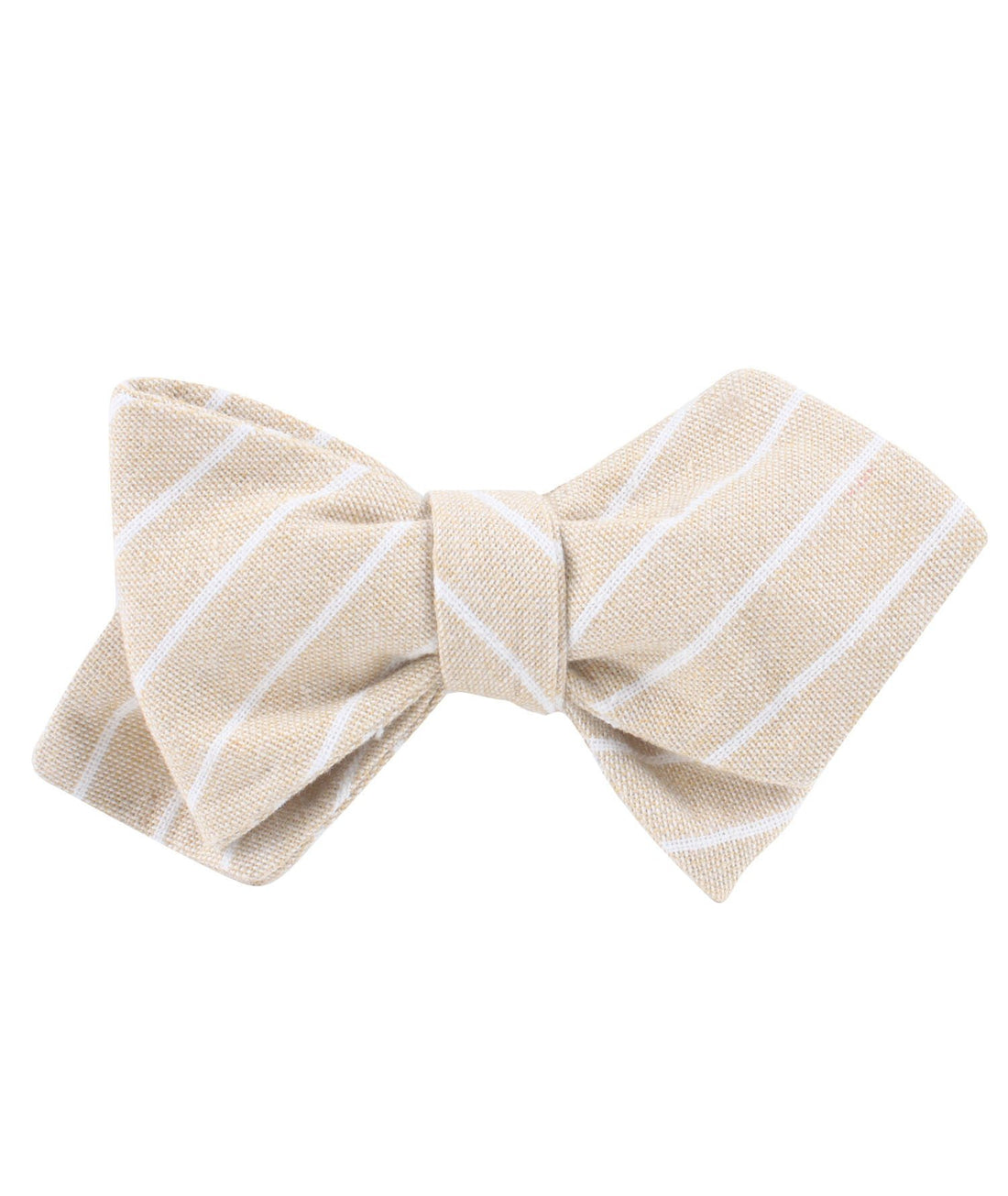 OTAA's Khaki Linen Pinstripe Diamond Self-Tie Bow Tie has historical pedigree. Khaki has a long history that draws associations with safaris, military uniforms and British India. In 1846, khaki was first conceptualised as a military aid by Sir Harry Lumsden who observed that white cotton uniforms made his army an obvious target for snipers. In the 21st century, it's become a prized fabric in the world of high-fashion to punctuate sophisticated styles.