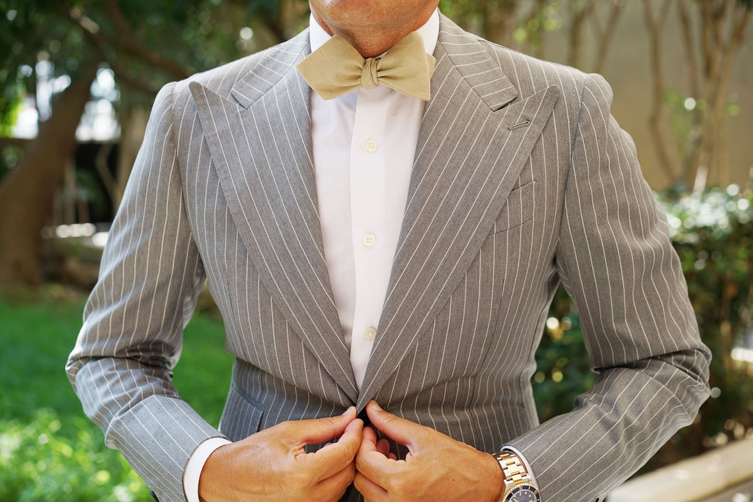 Put a classic spin on your wardrobe regulars with OTAA's Khaki Linen Self Tie Diamond Bow Tie. The Brothers at OTAA prize khaki; for its heritage, for its refinement and for its sense of adventure. They incorporated khaki into this design to gift you the same sense of luxury they feel when they put khaki on. A cornerstone staple for men who desire refinement with minimal effort, the Khaki Linen Self Tie Diamond Bow Tie is decked out with high-quality features you'll be appreciating for years to come. Hand-stitched and superbly tailored from a plush linen; there's no doubt this in-house design will imbue your suits with luxury. Designed exclusively by the brothers at OTAA.