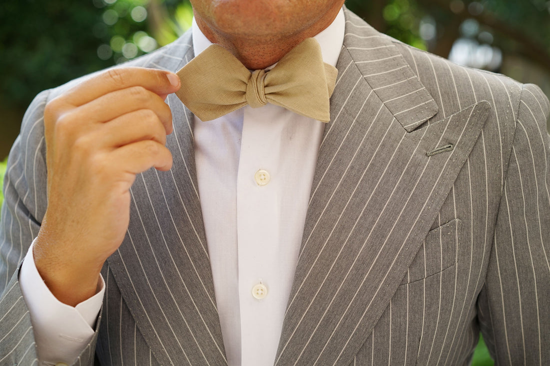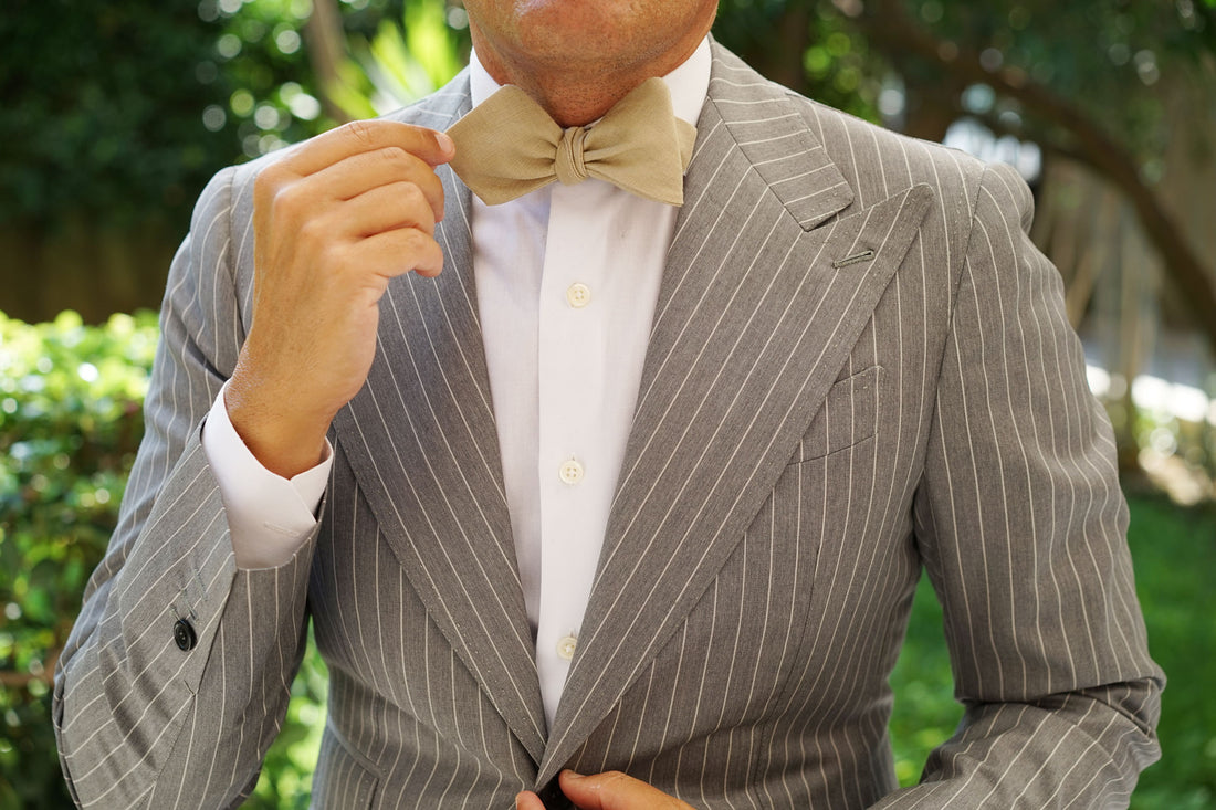 Khaki Linen Self Tie Diamond Bow Tie
