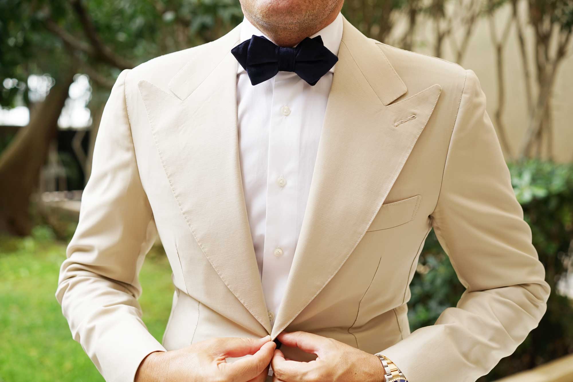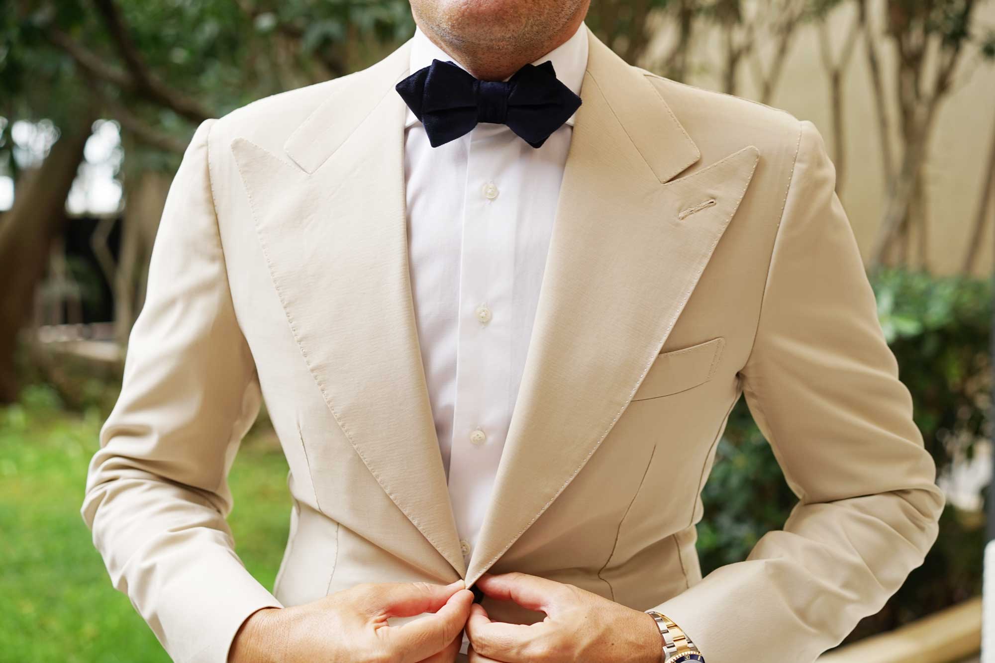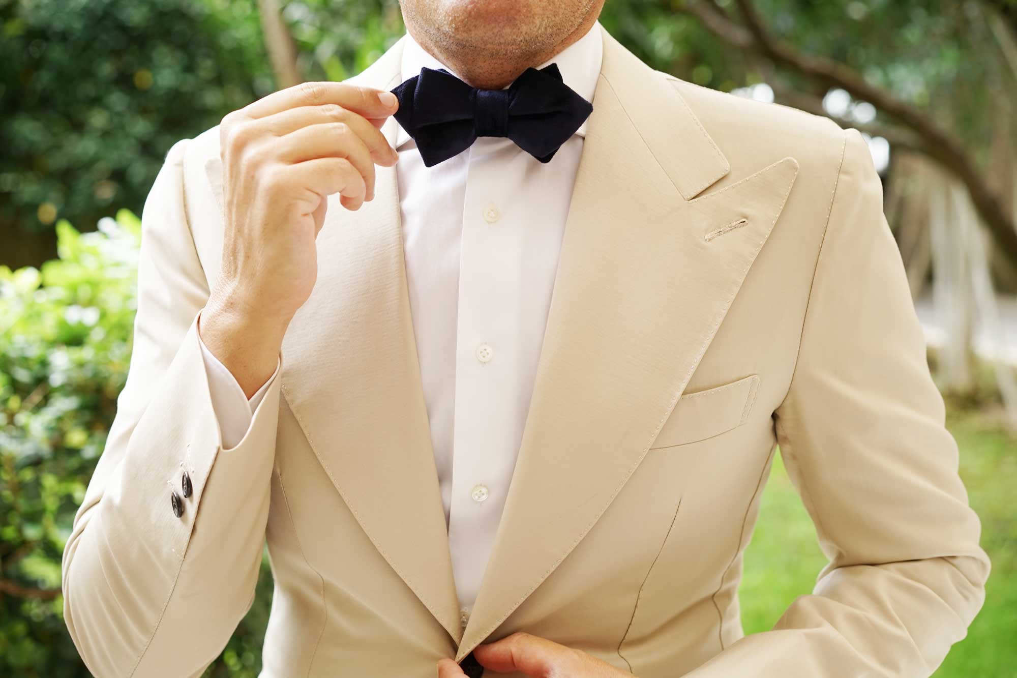 A rich fruition of OTAA’s high-quality philosophy, this Navy Blue Bond Diamond Velvet Bow Tie extends a 007 sensibility. Paying tribute to the style icon who graced the silver screen for the better portion of a century, this Navy Blue Bond Diamond Velvet Pre-tied Bowtie boasts a brooding velvet fabric that Mr Bond himself used to sport so effortlessly. The deep, indulgent blue hue of this Navy Blue Bond Diamond Velvet Bowtie will bring your suits a versatile advantage that can be worn time, and time again. Let the decadent hand-stitched tailoring extend a wealth of luxury to your formal attires that they will indisputably benefit from. Let it take you to weddings and your formal evenings with a presence of unabashed sophistication. We’ll have it shaken, not stirred. Designed exclusively by The Brothers at OTAA.