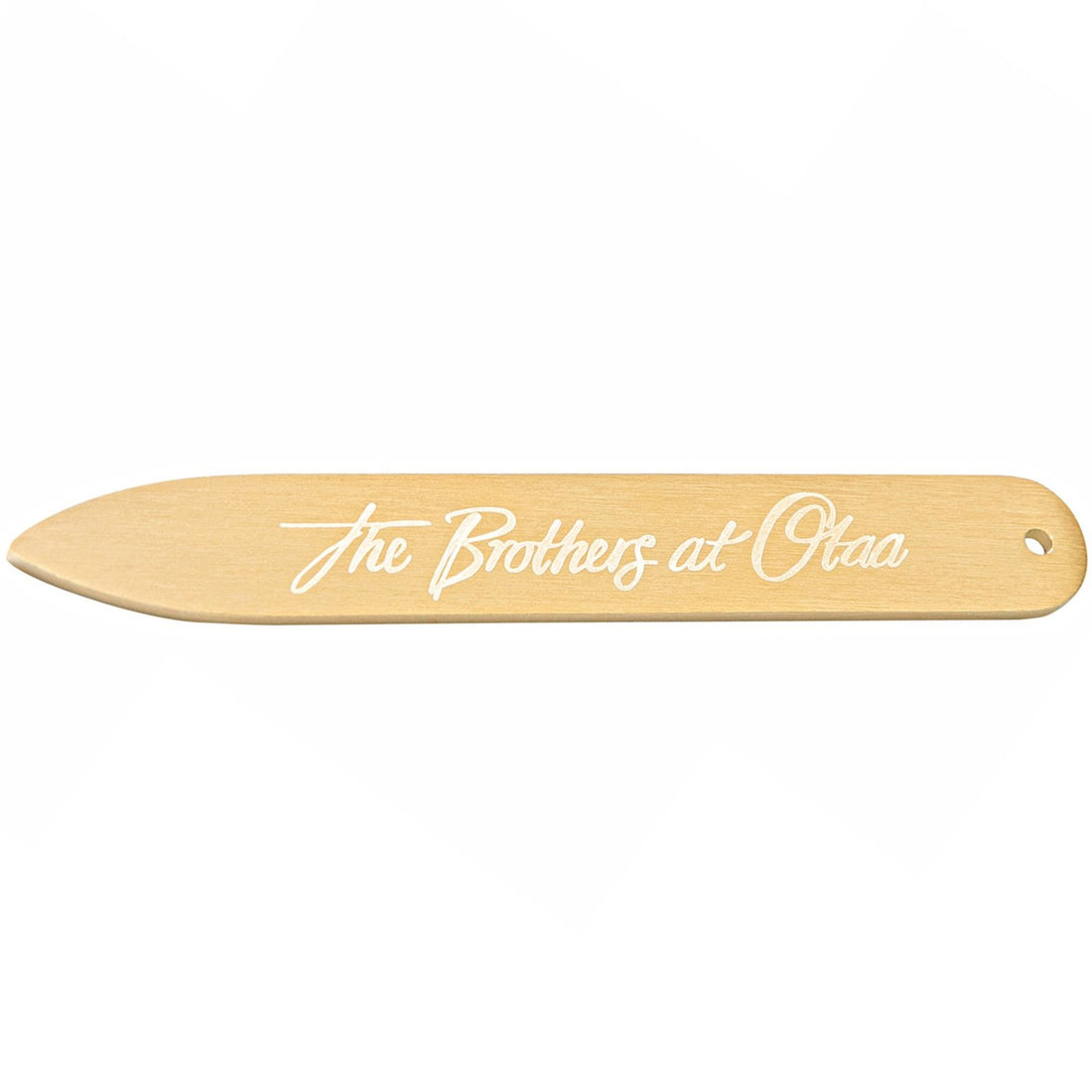 A sleek staple by the Brothers at OTAA, the Brushed Gold Collar Stays marry functionality with sophistication. Collar stays are wardrobe essentials that are designed to keep your shirt collar looking flat and clean-lined throughout the day. OTAA's Brushed Gold Collar Stays offer two thin plates of metal that are to be inserted into the seams of your shirt collar on each side, making it stand flat against the collarbone. A must-have essential to grant you peace of mind throughout the day, these exclusive collar stays are imbued with a brushed gold complexion and an elegantly engraved signature. It's a gift from us to you.