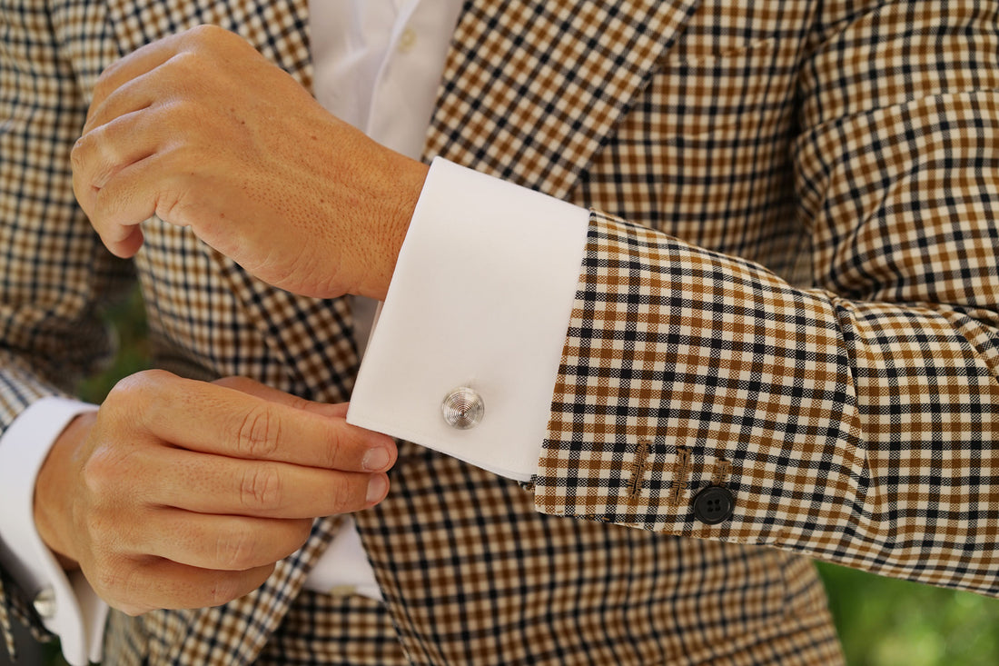 OTAA is dedicated to uncompromising quality and enduring style. Taking inspiration from the utilitarian cufflinks worn by American Presidents in the 1960s, these Silver Etched Cufflinks have a minimalist face housed in resilient reflective rhodium, achieved by the robust, hand chiselled technique. Complete with a supple black leather box, these cufflinks exude ageless style and will make a sterling gift for the discerning man who appreciates timeless details. The luxurious silver finish incites a cool toned palette that will finesse your attire with sophistication.
