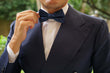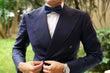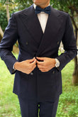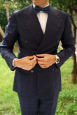Punctuate your tailoring roster with this dashing Navy Blue with Green Polka Dots Bow Tie by the Brothers at OTAA. The classic Navy Blue with Green Polka Dots Bow Tie construction gets a modern update with a slim, streamlined cut. Match the sharp silhouette with a trim-fitting shirt and finish with a white pocket chief for added flair.