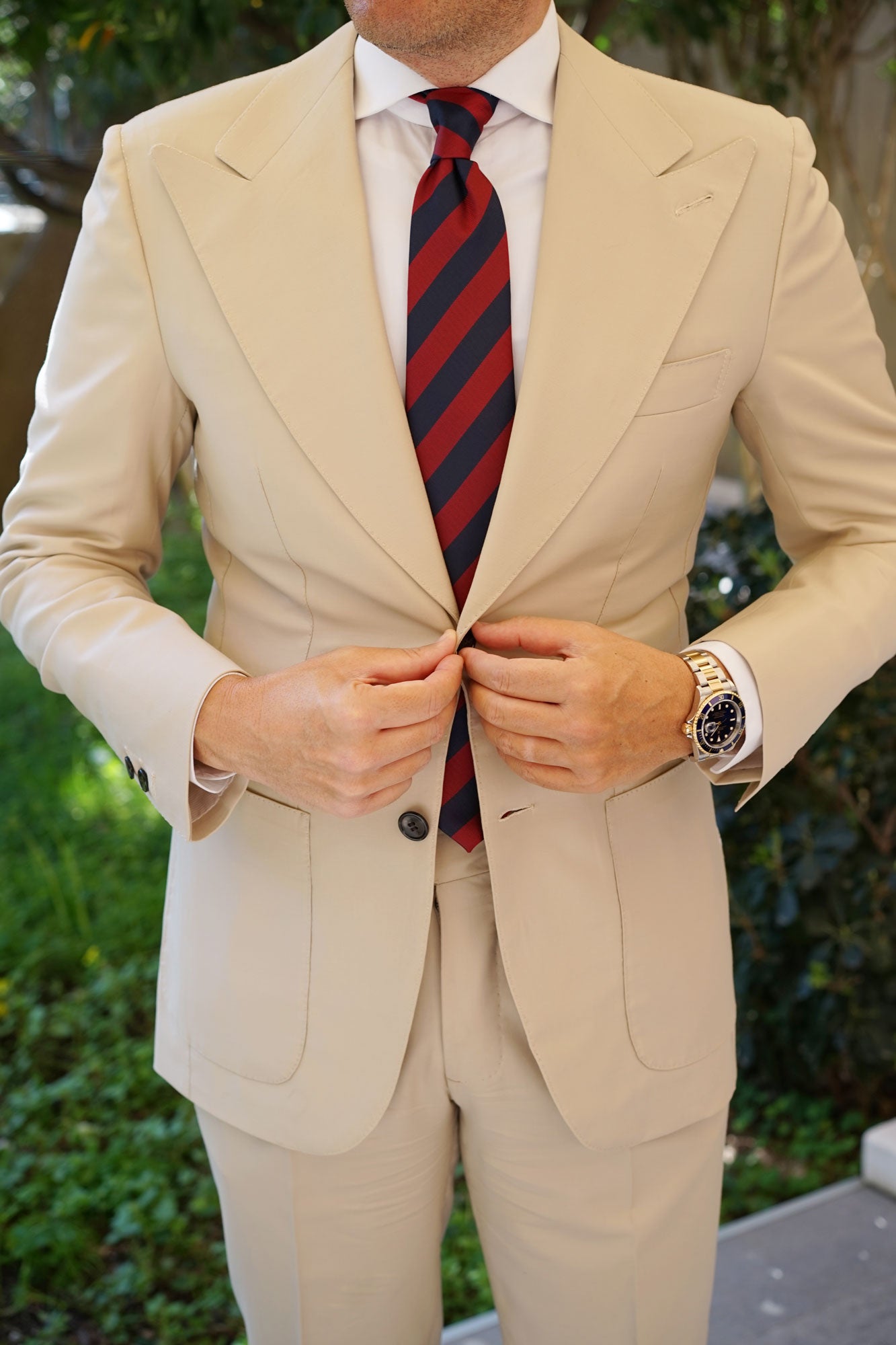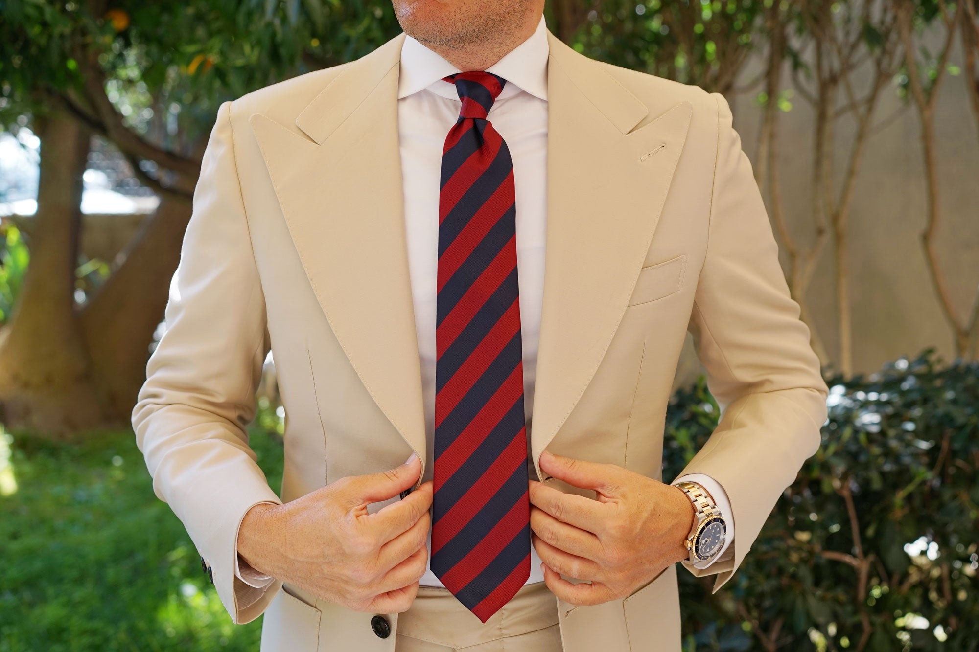 When your boss sees you wearing the Burgundy & Navy Blue Stripes Tie, he’ll finally say, “Hey! Great tie!” - you'll be bestowed with a heightened sense of importance for the rest of the day. Eventually, you’ll realise he was talking to the guy behind you, but that’s okay because this Burgundy & Navy Blue Stripes Necktie is a knock-out!