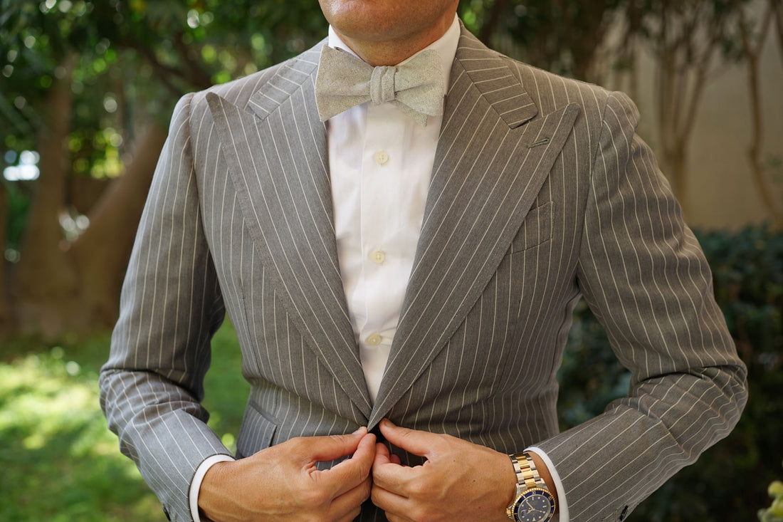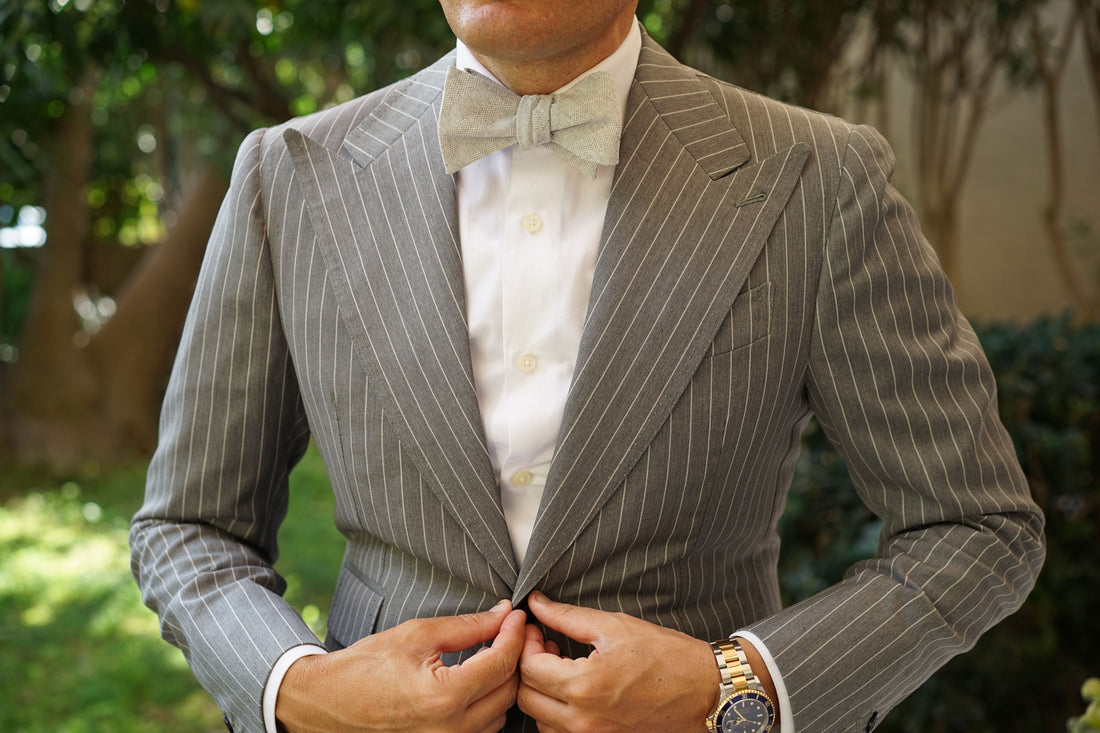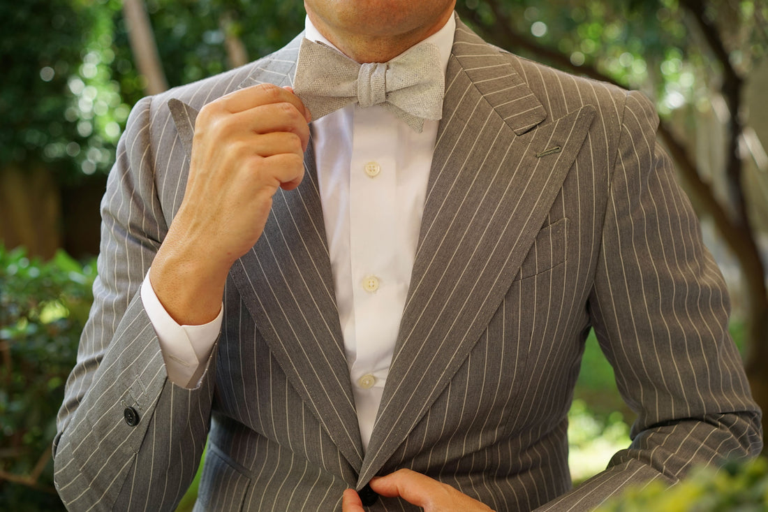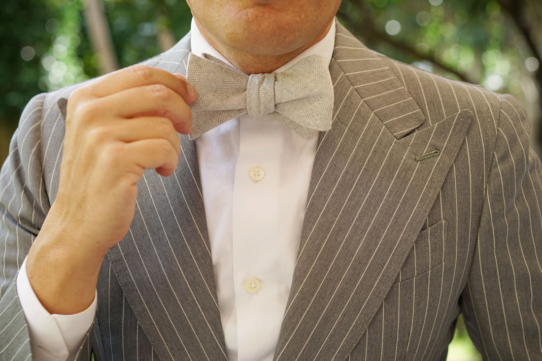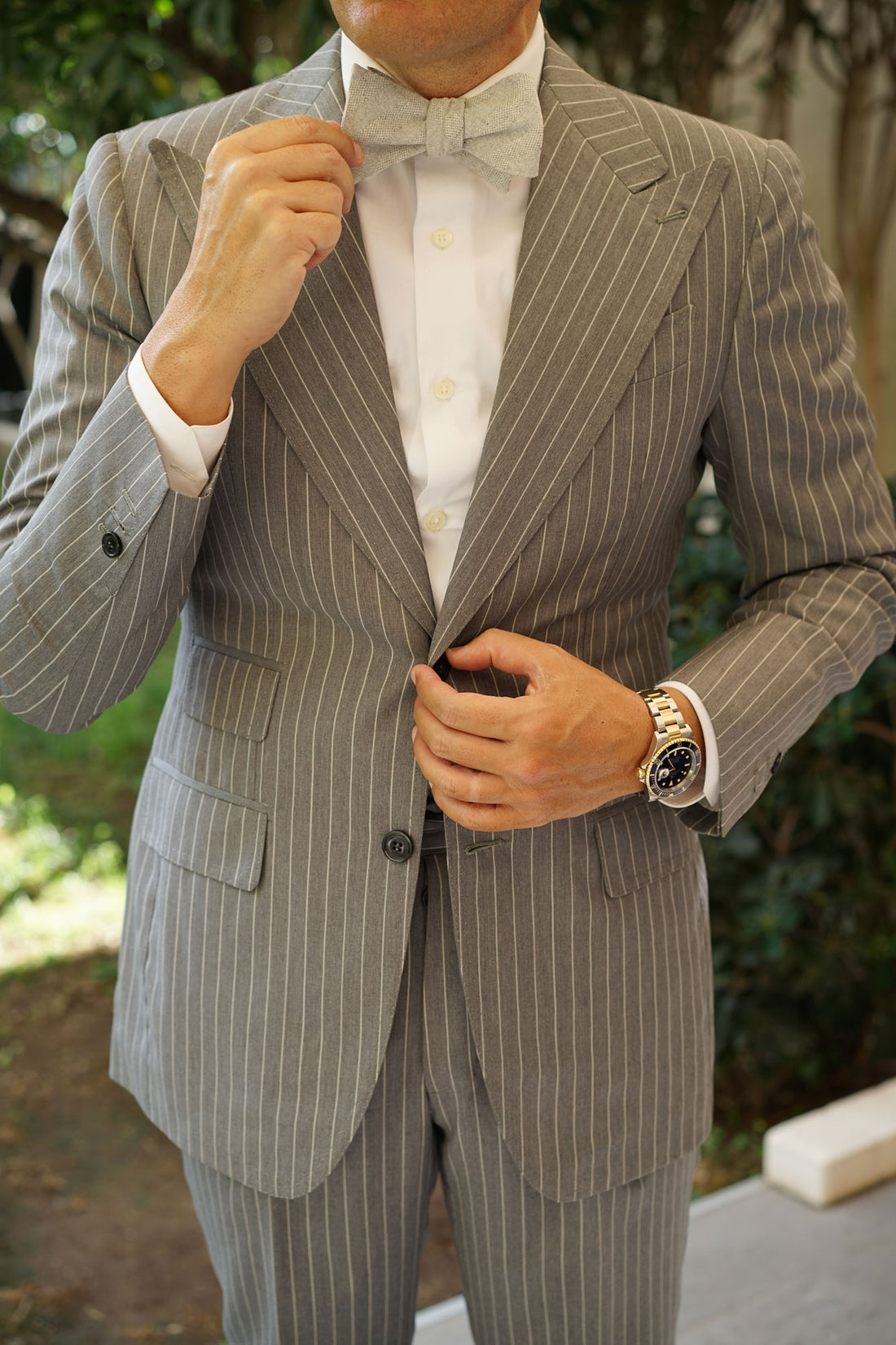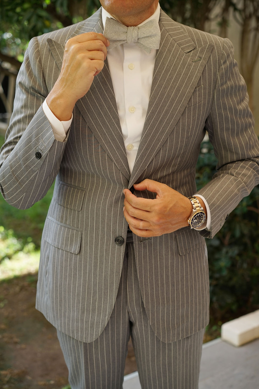 Capri Grey Tweed Striped Linen Self Bow Tie