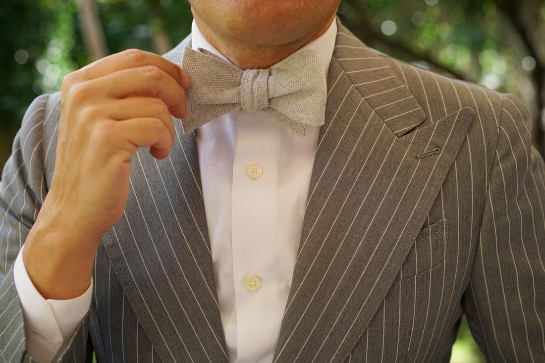 Capri Grey Tweed Striped Linen Self Tied Bow Tie