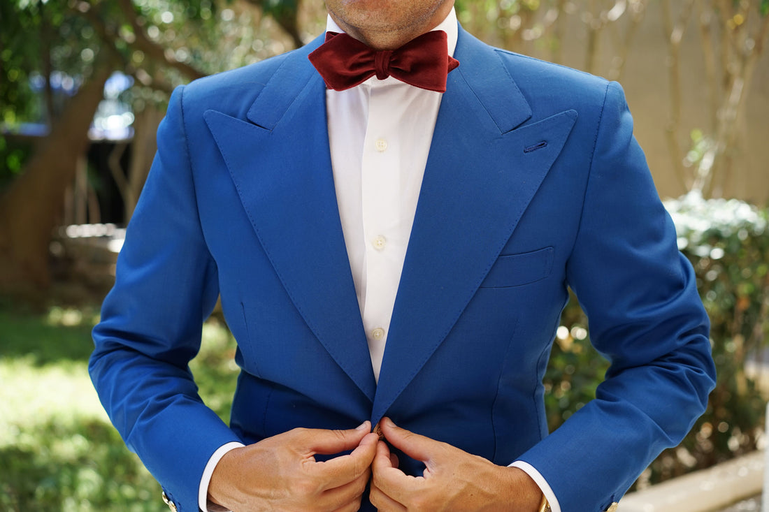 Having been designed in-house and handcrafted from an exquisite velvet fabric, this Bond Burgundy Diamond Velvet Self Tie Bow Tie is both plush and extravagant in equal proportions. Let it add a finishing touch to your wedding suits and formal looks alike. It will also bode superbly with classic tuxedos. Designed exclusively by The Brothers at OTAA.