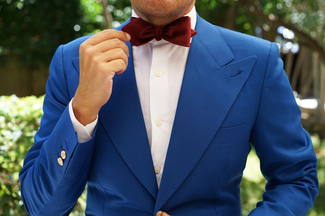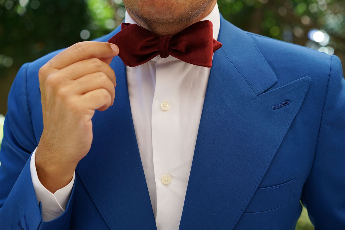 Sophisticated and textured, the Bond Burgundy Diamond Velvet Self Tie Bow Tie will get you suited up to elegance and makes a lethal statement of sophistication.
