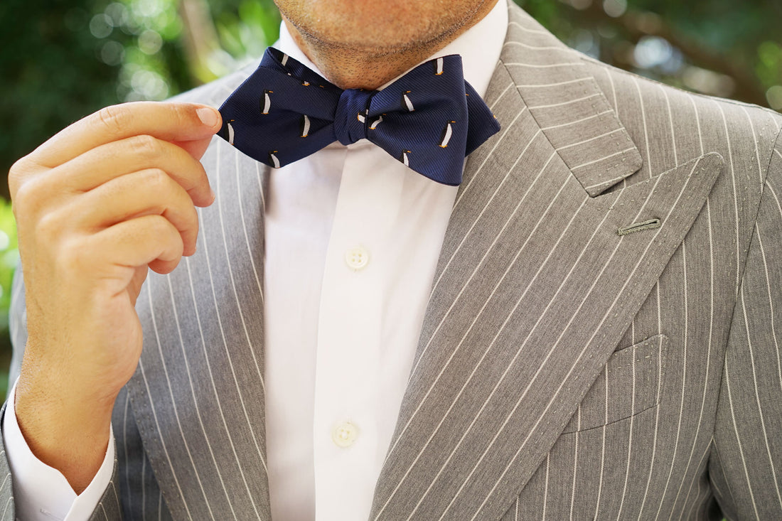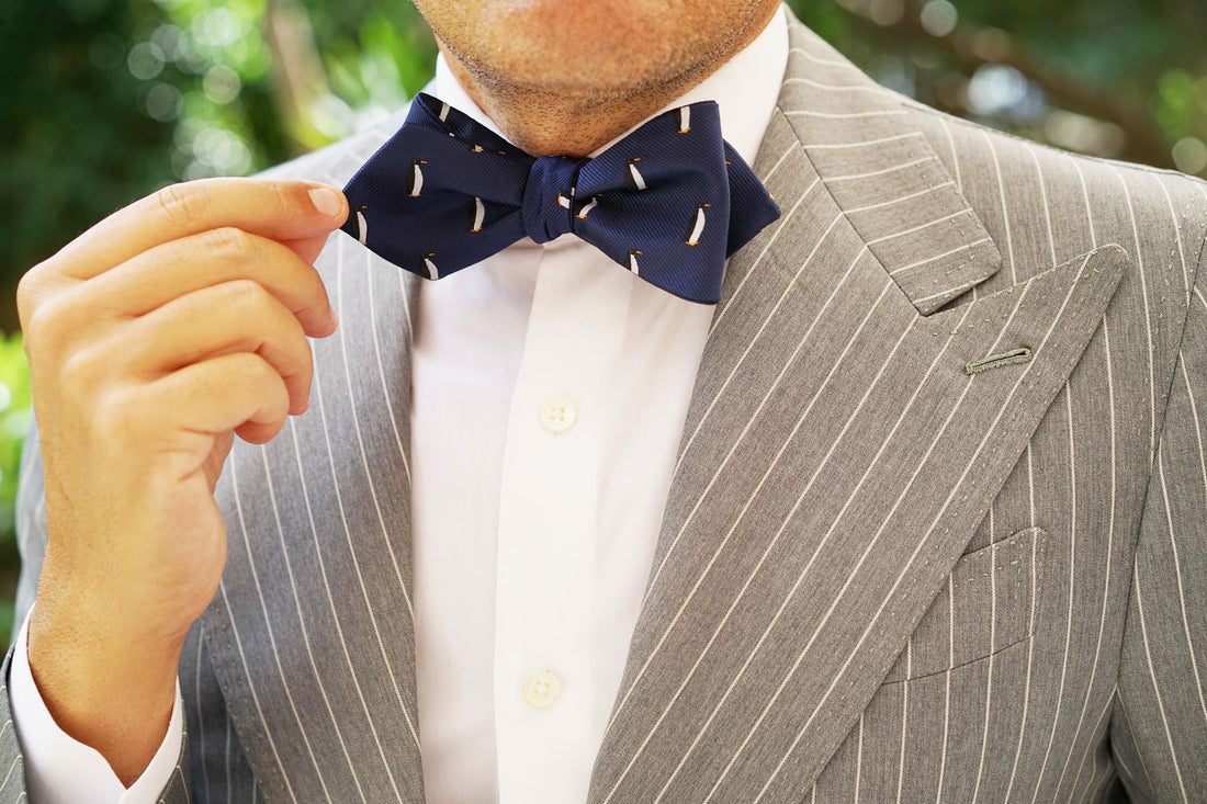 OTAA's King Penguin Diamond Bow Ties Self-Tie is backed in a layer of deep navy - a nod to the brothers’ playful and functional aesthetic. The Emperor Penguin array appliquéd is hand stitched, boosting this piece's cool appeal. Generally, king penguins walk slowly and don’t hop to get around. Inspired by the exceedingly monarchical penguin who can’t even walk fast enough when it’s in a rush, this King Penguin Diamond Self-Tie Bow is a charming addition to your Diamond Bow Ties Self-Tie collection.