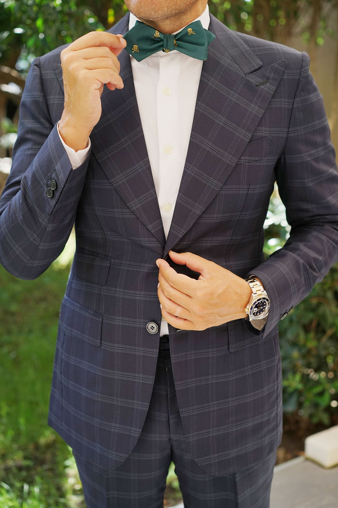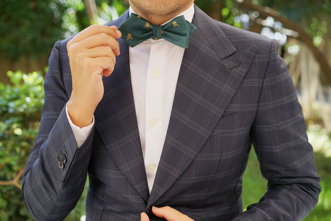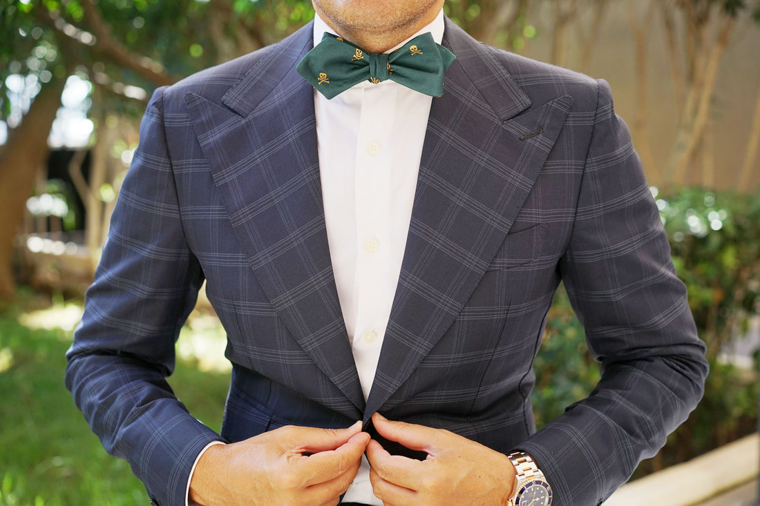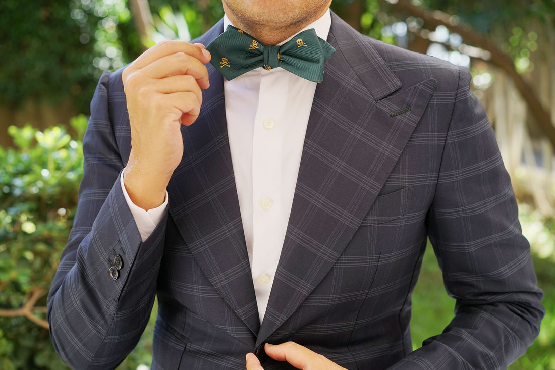 Sweetly speckled, OTAA's signature Skull & Crossbones Green Diamond Bow Ties Self-Tie features an array of small, golden skull heads across a background of rich, green satin. Made by hand, its soft and breathable material makes it a perfect accessory for spring and summer. Stay cool in style with OTAA's Skull & Crossbones Green Diamond Bow Ties Self-Tie.