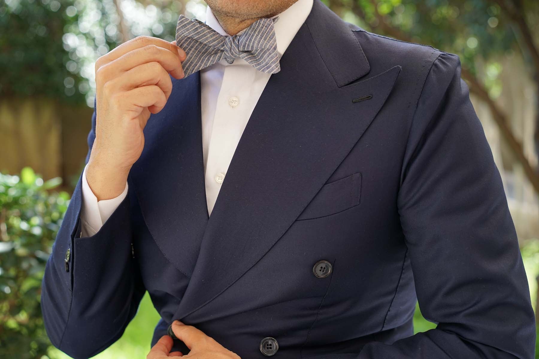 The Brothers at OTAA designed this Blue Dry Cold Linen Pinstripe Self Tie Bow Tie in an old dusty art studio. They had to share the space with a monk who spoke sutras to them while they worked. It was on one auspicious night, when the wind was wildly howling, the monk walked over to their canvas and looked them in the eye. He spoke no words but the brothers knew what he was thinking: “This Blue Dry Cold Linen Pinstripe Self Tie Bow Tie is the best damn thing I’ve ever seen. Your work here is done now." It had taken them 5 years.