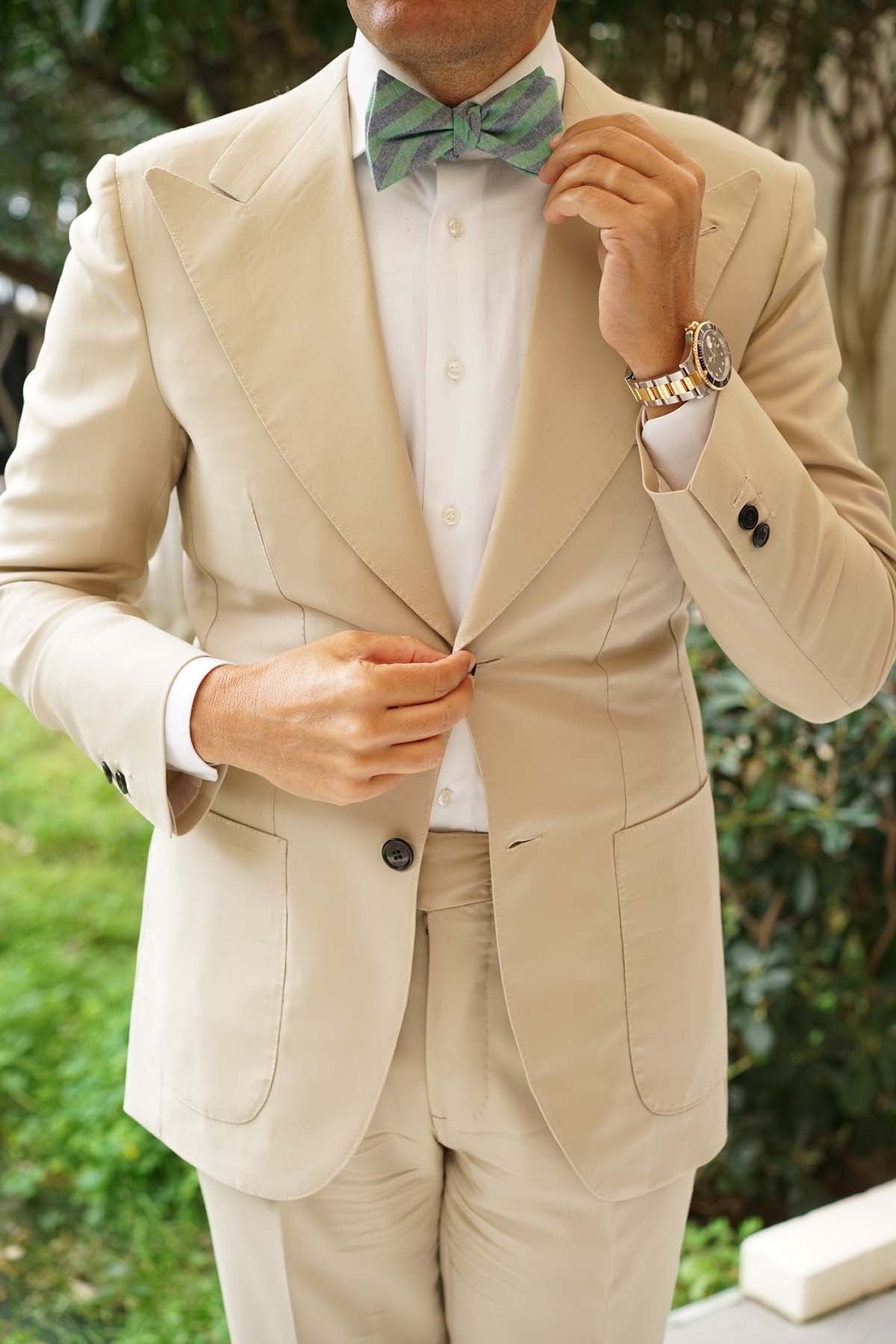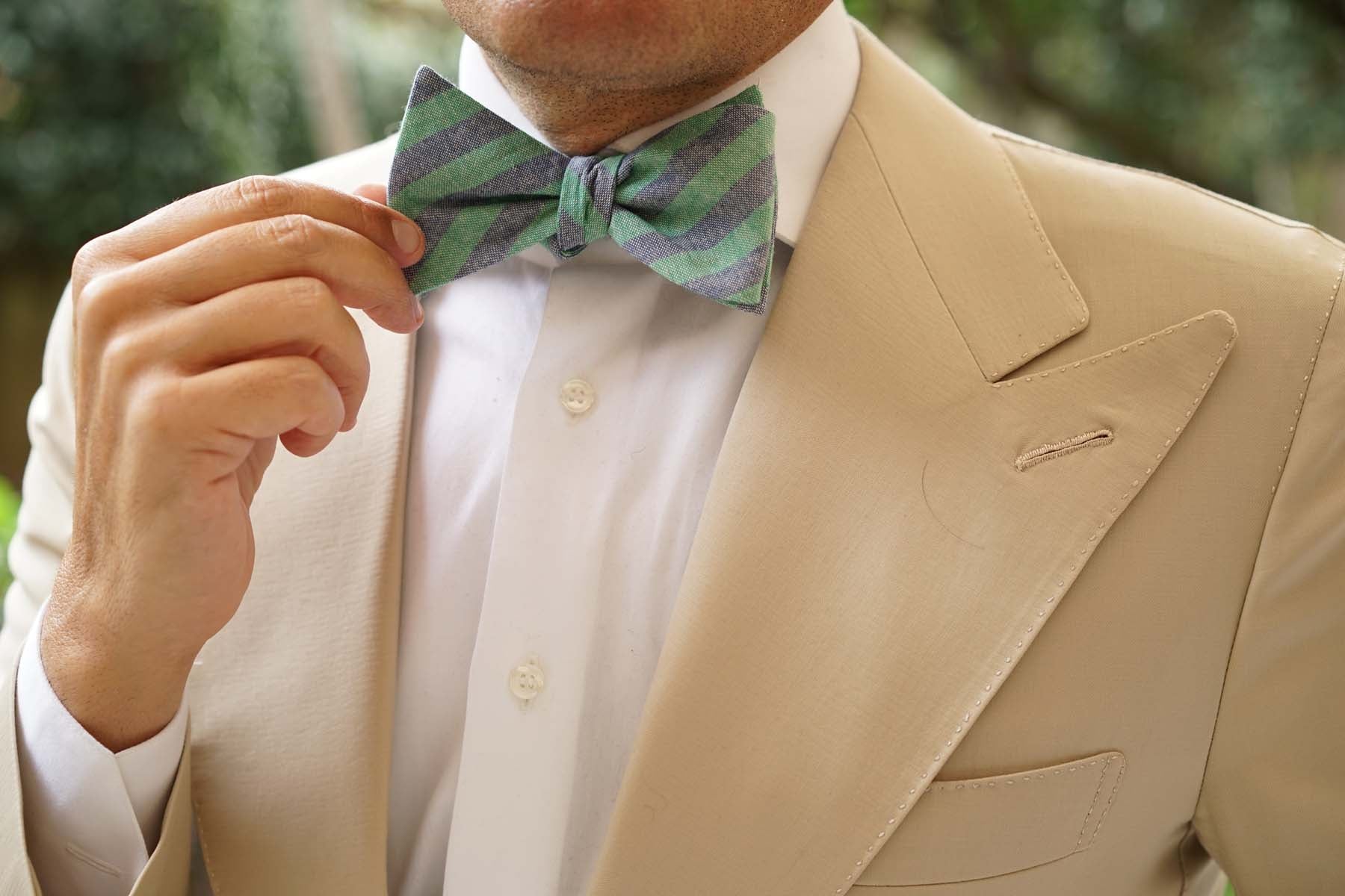 To produce the Green & Blue Bengal Linen Self Tie Bow Tie, we took a quick trip to the Amazon. We find this tends to aid with the design process. Endeavouring to catch a glimpse of a Bengal tiger up close, we were shortly informed by a local tribe that Bengal tigers don’t actually live in the Amazon. We were feeling slightly disheartened and ready to go home, when suddenly; a colourful blue and green bird caught our eye. Inspired by the Bengal tiger and a really cool bird, OTAA presents the Green & Blue Bengal Linen Self Tie Bow Tie.