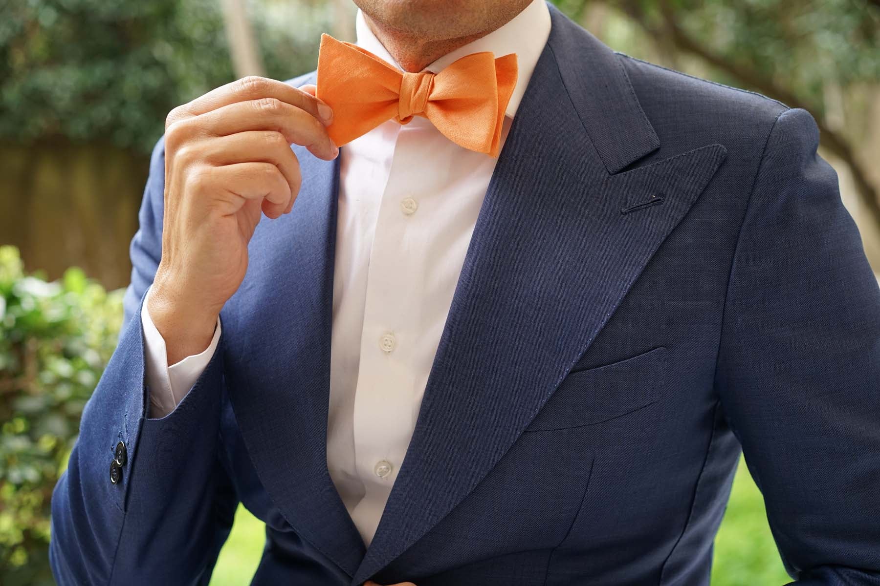 Orange Amber Slub Linen Self Tie Bow Tie