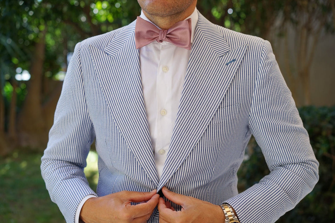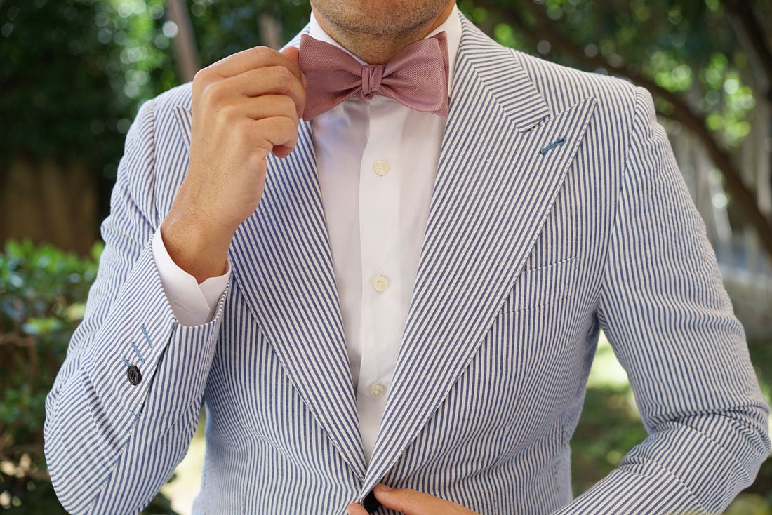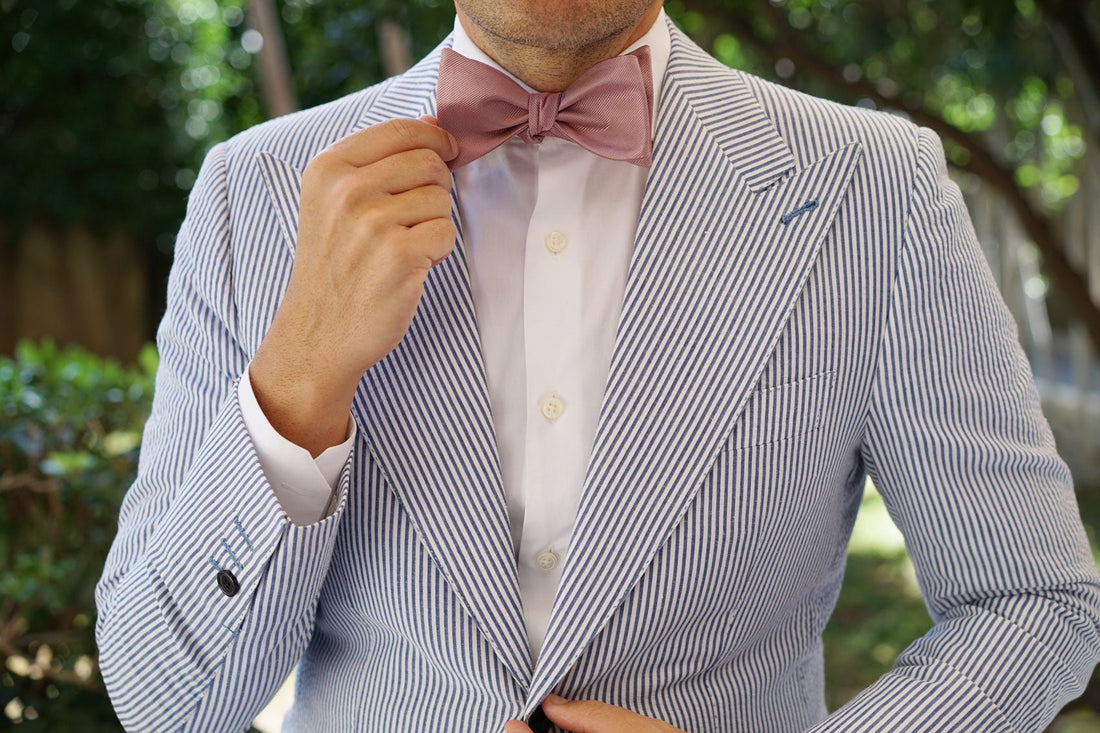 The Dusty Rose Twill Self Tie Bow Tie is a classic example of just how much-refined elegance a single Self Tie Bow Tie can contain. Crafted with a careful focus on marrying sophistication and esteem in equal measure. This enticing slice of tailoring is designed to impress even the most jaded and fearsome pirate in your crew. The gorgeous satin surface is the first treasure here, stroked delicately with a subtle lined surface to enhance the depth of both the dusty tones of the rose and sheening satin surface.