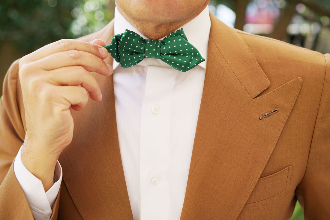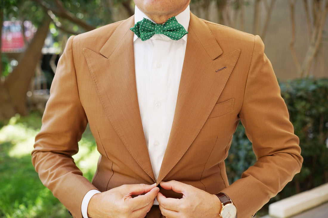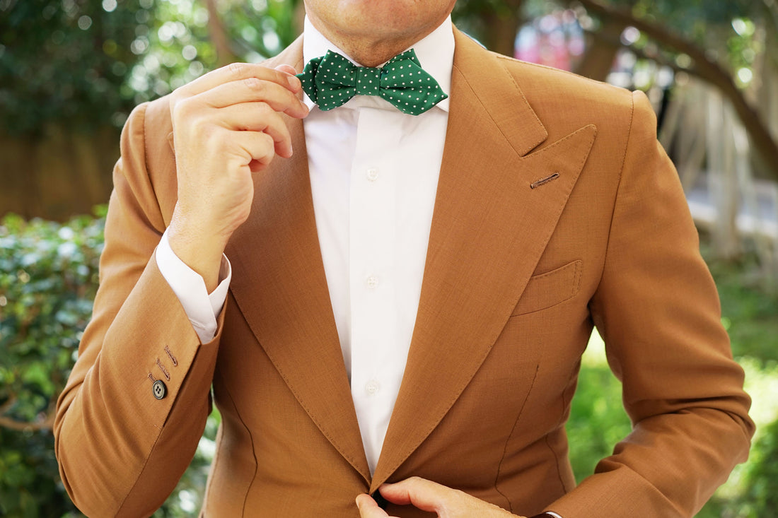 From OTAA's signature first collection, the Green Polka Dot Diamond Bow Tie exudes a wealth of luxury. The elegant polka dot patterning puts a classic twist on this modern green design. Decorated with a vibrant emerald green palette, this diamond bow tie is accented with white polka dots to give a refreshing point of difference. Having gone through an extensive process of in-house design, hand-tailoring and hand-stitching; this Green Polka Dot Diamond Bow Tie is a masterful showcasing of superior quality. Let it be your go-to staple whenever you need to dress to perfection. Designed exclusively by the Brothers at OTAA.
