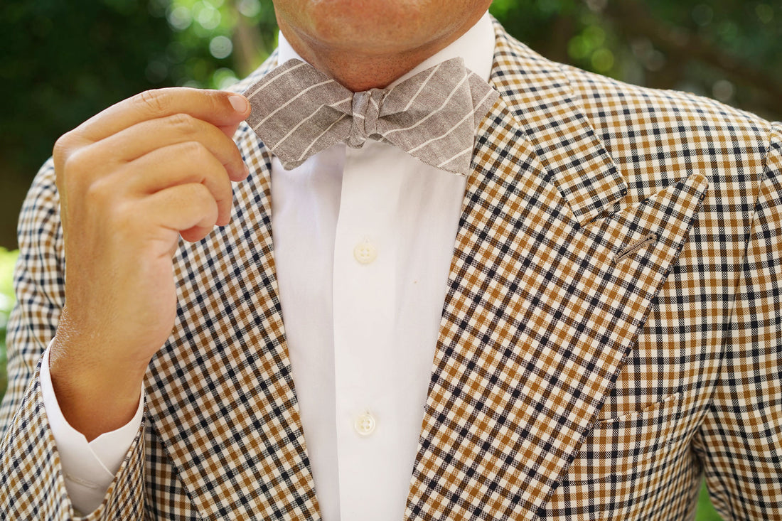 The Grey Edinburgh Pinstripe Diamond Self-Tie Bow Tie offers unmistakable quality through its hand-stitched design and elegantly constructed body. Making a high-quality statement, this diamond untied bowtie makes the perfect staple for work styles and casual looks alike. The soft grey palette features subtle white stitching and a refined diagonal striped pattern. Wear it to give a refined outlook to your everyday styles. Designed exclusively by the Brothers at OTAA.