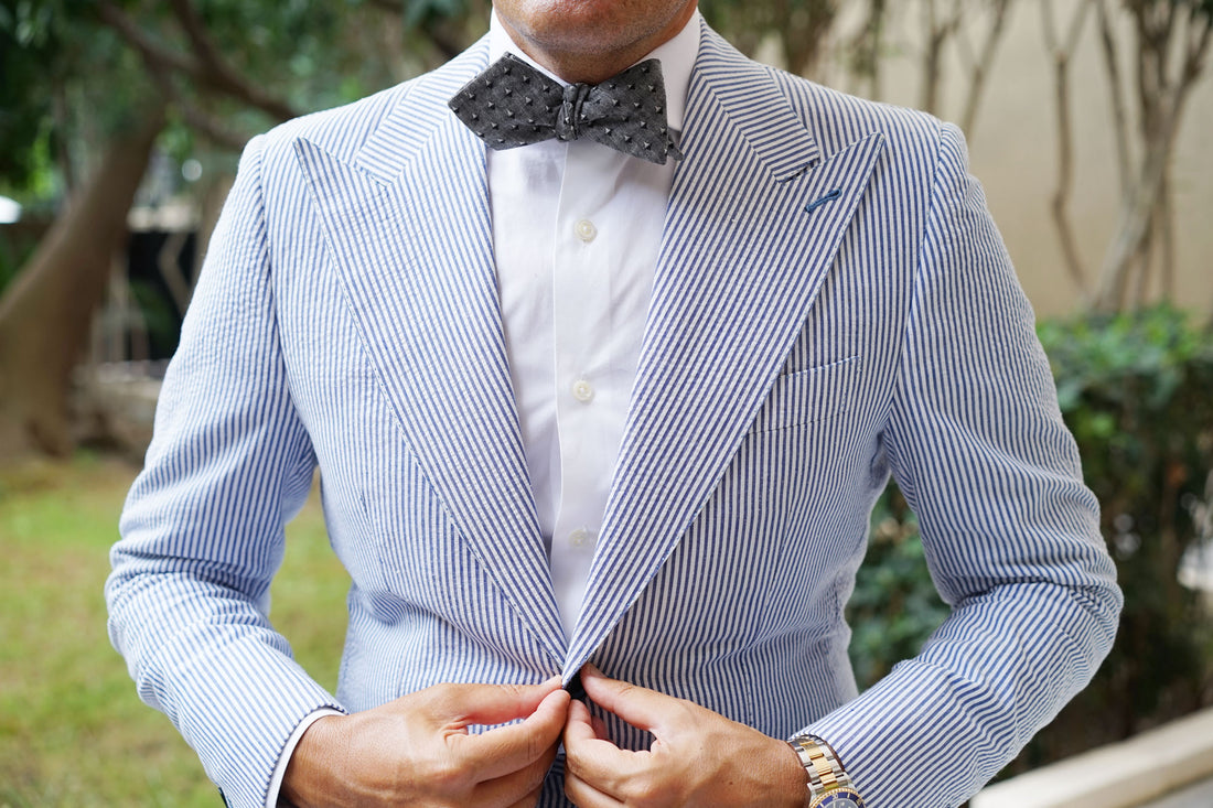 OTAA’s Inception Black Linen Diamond Self Bow Tie features a sleek, two-toned diamond design. With our hand-stitched approach to tailoring ensuring this Bowtie emanates a high-quality presence as part of formal ensembles.