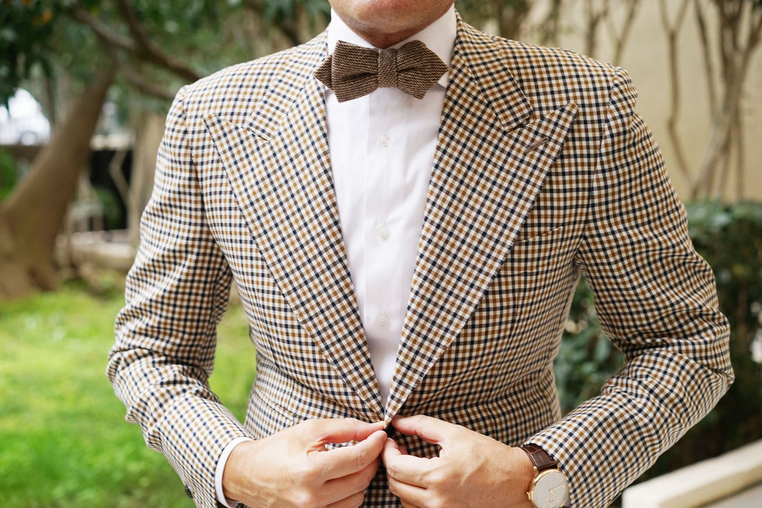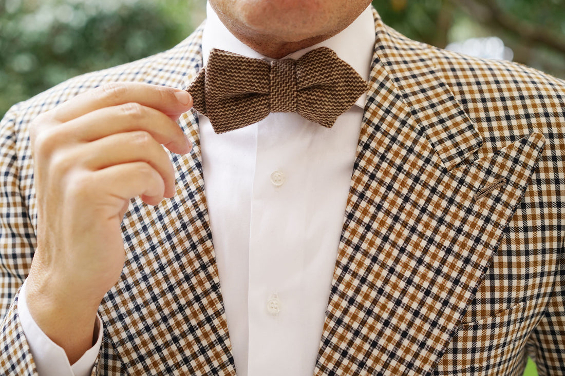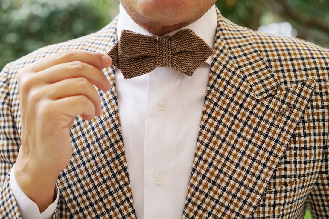 The Brothers at OTAA take their designs seriously, which is why this Espresso Brown Zigzag Wool Diamond Bowtie is a product of method research. "Immersion is the key to success," the elder brother at OTAA professes as he sips his double shot espresso.