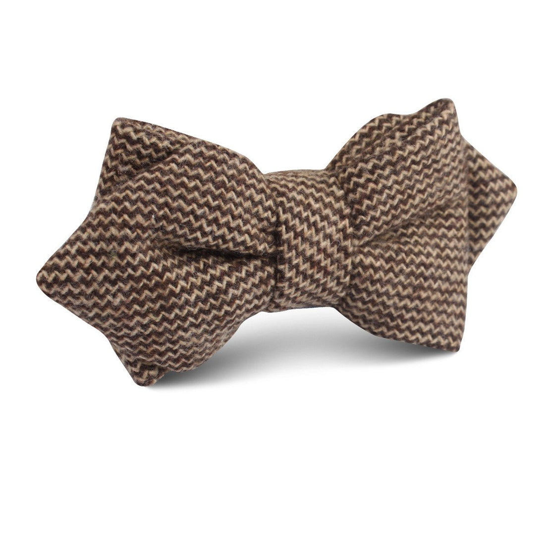 This decadent wool diamond pre-tied bowtie features a thick body that’s luxuriously soft to the touch. A stand-out option for the cooler months, this Espresso Brown Zigzag Wool Diamond Bowtie is imbued with dark and light brown hues for the label's signature vintage outlook. Let the eye-catching zig zag design bring a sophisticated accent to your boardroom styles. Designed exclusively by the Brothers at OTAA.