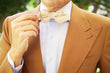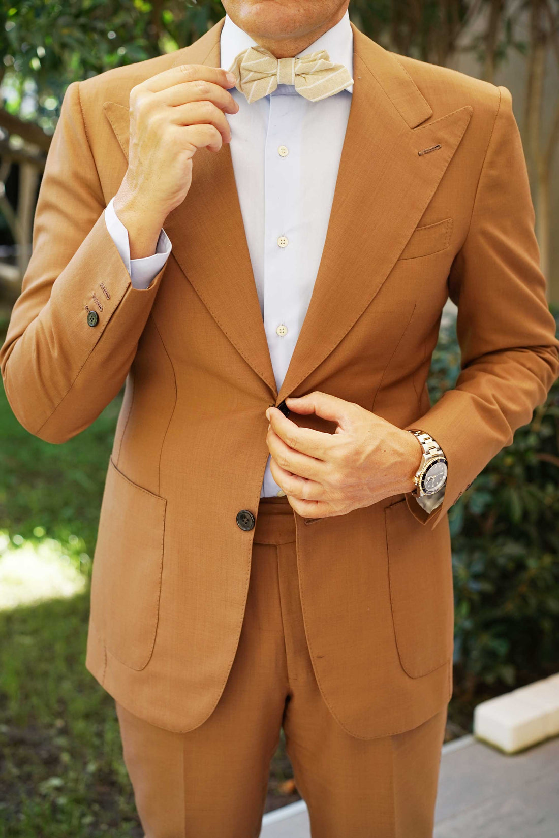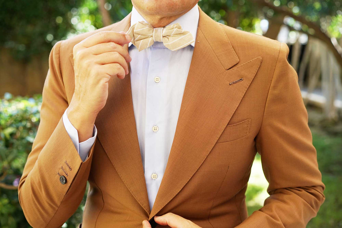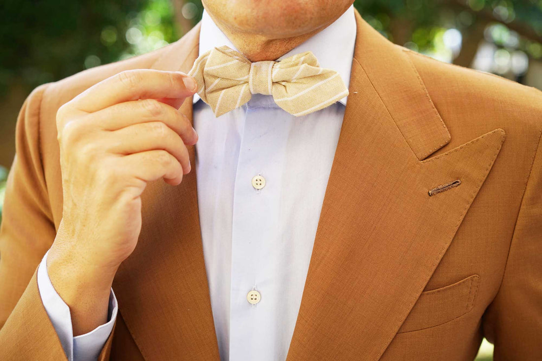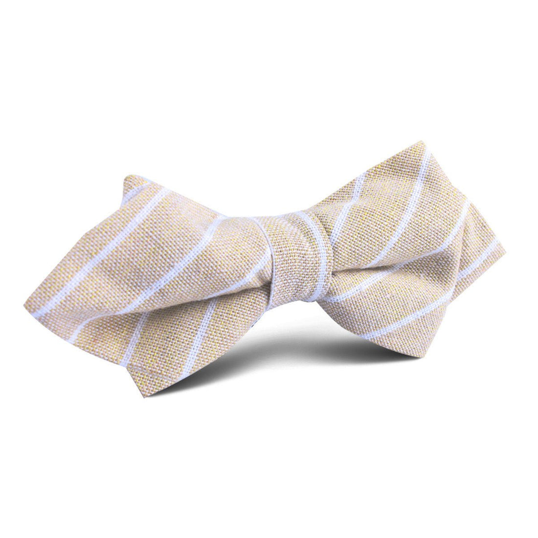 Khaki Linen Pinstripe Fabric Mens Diamond Bowtie