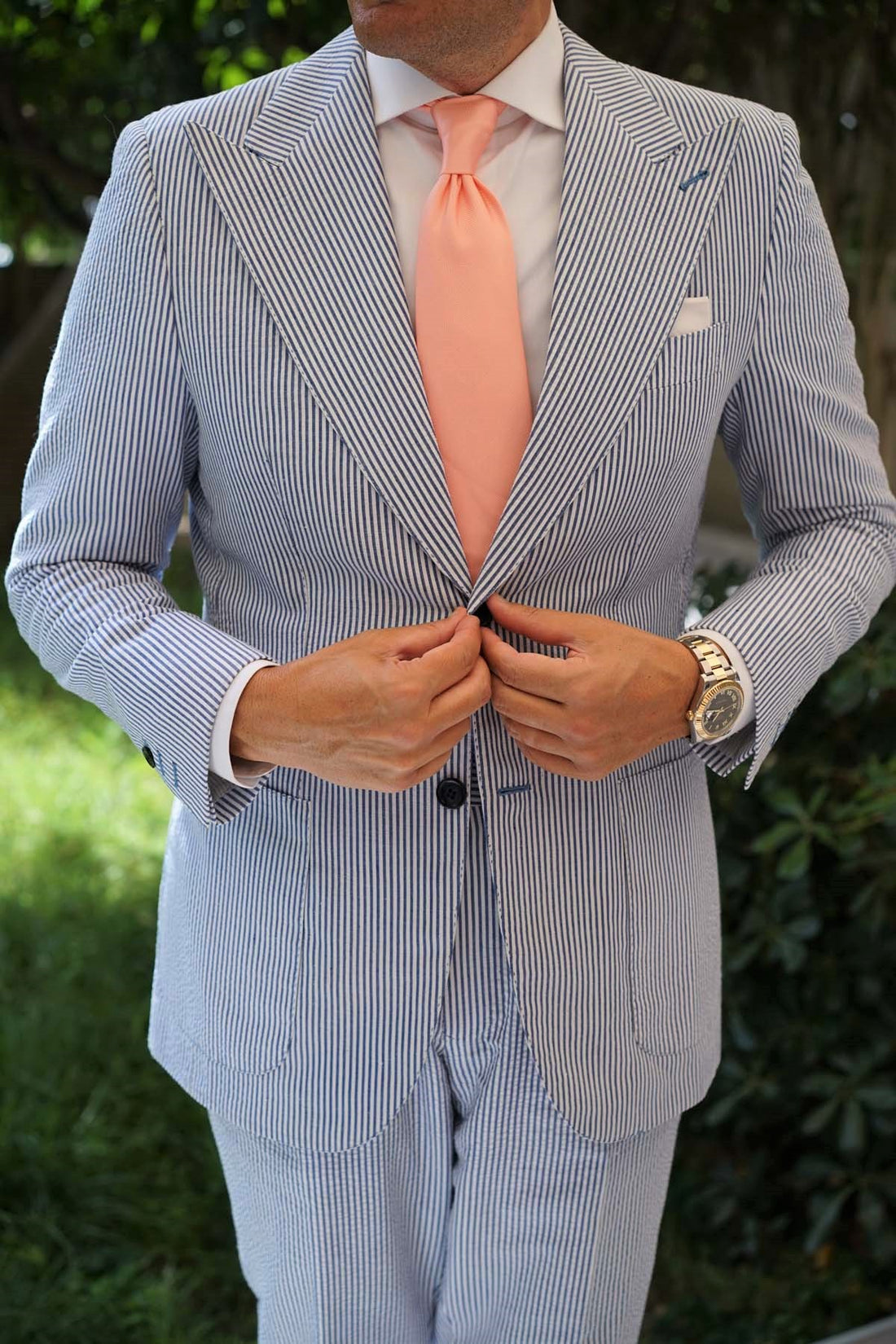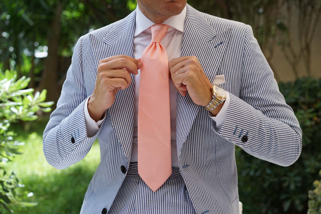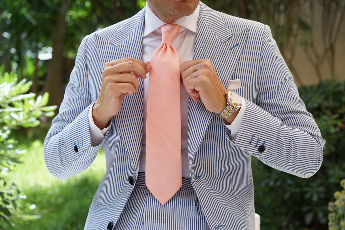 The Bellini Peach satin weave enriches the visual scope of the necktie with the highest fidelity of hand-cut and sewn threads. The light fabric is finely textured to the feel, with an added feel of softness to the shimmering fabric. The Bellini Peach Weave Tie will add a fine accent to your ensemble it’s so good we’ll toast to it. A prosecco cocktail sounds good about now.