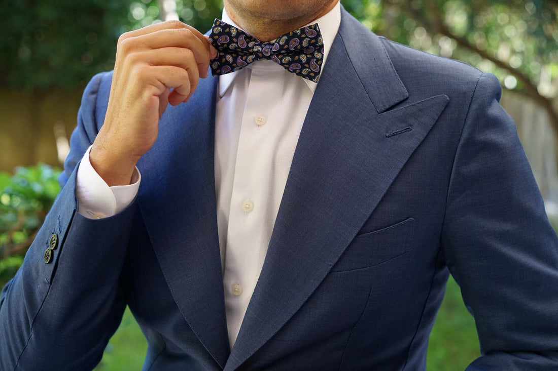 Beautifully finessed in a royal violet palette, OTAA’s Viola De Lira Paisley Bow Tie is brimming with exclusivity. The indulgent dark purple canvas is complemented by purple, yellow, grey and white highlights for an eye-catching appearance. The plush cotton body and luxurious hand-stitched details ensures this bow tie brings a high-quality aspect to your formal tailoring. Designed exclusively by the Brothers at OTAA, the Viola De Lira Pre-tied Bowtie exudes a sophisticated sense of style.