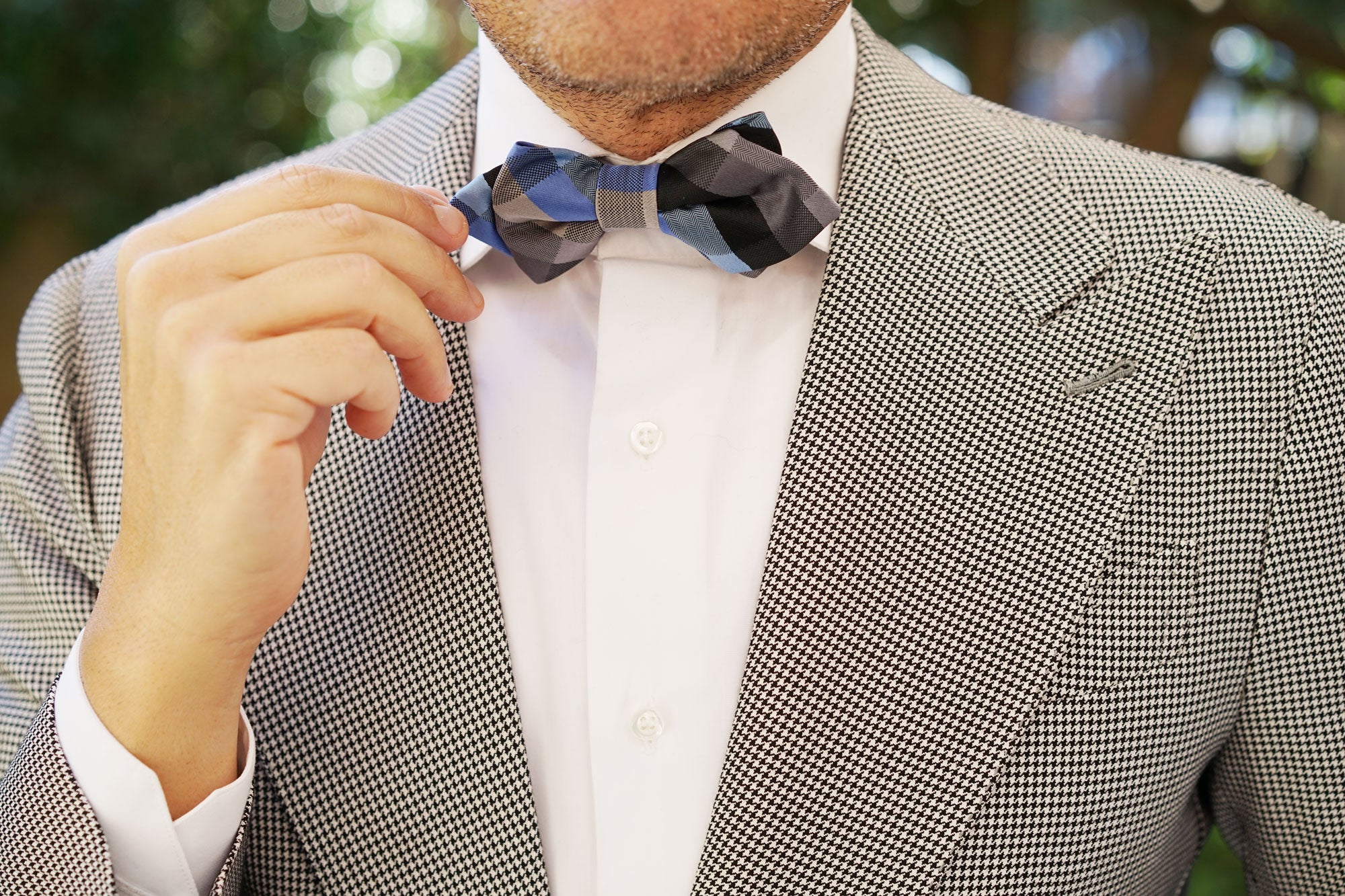 OTAA's original boardroom statement; the Black Grey Silver Blue Pattern Diamond Bow Tie makes a confident staple. Outlined with a masculine palette of black, grey and blue hues, this diamond bow tie is hand-stitched and tailored from a plush micro fabric. Gifting you comfort and flexibility throughout the day, this Black Grey Silver Blue Pattern Diamond Bow Tie demonstrates that comfort doesn't have to compromise luxury. Let its clean silhouette and handcrafted perspective give you something to feel confident about when you walk out the door. Designed exclusively by the brothers at OTAA.