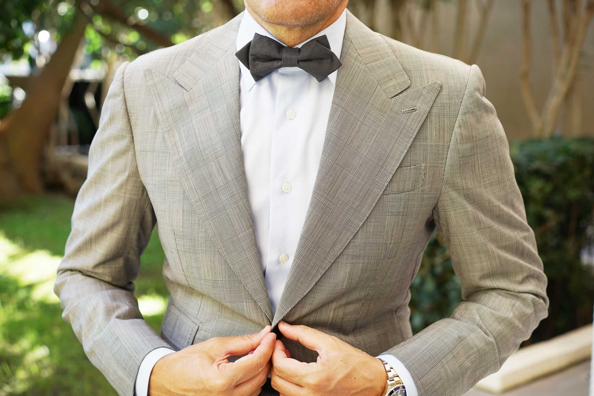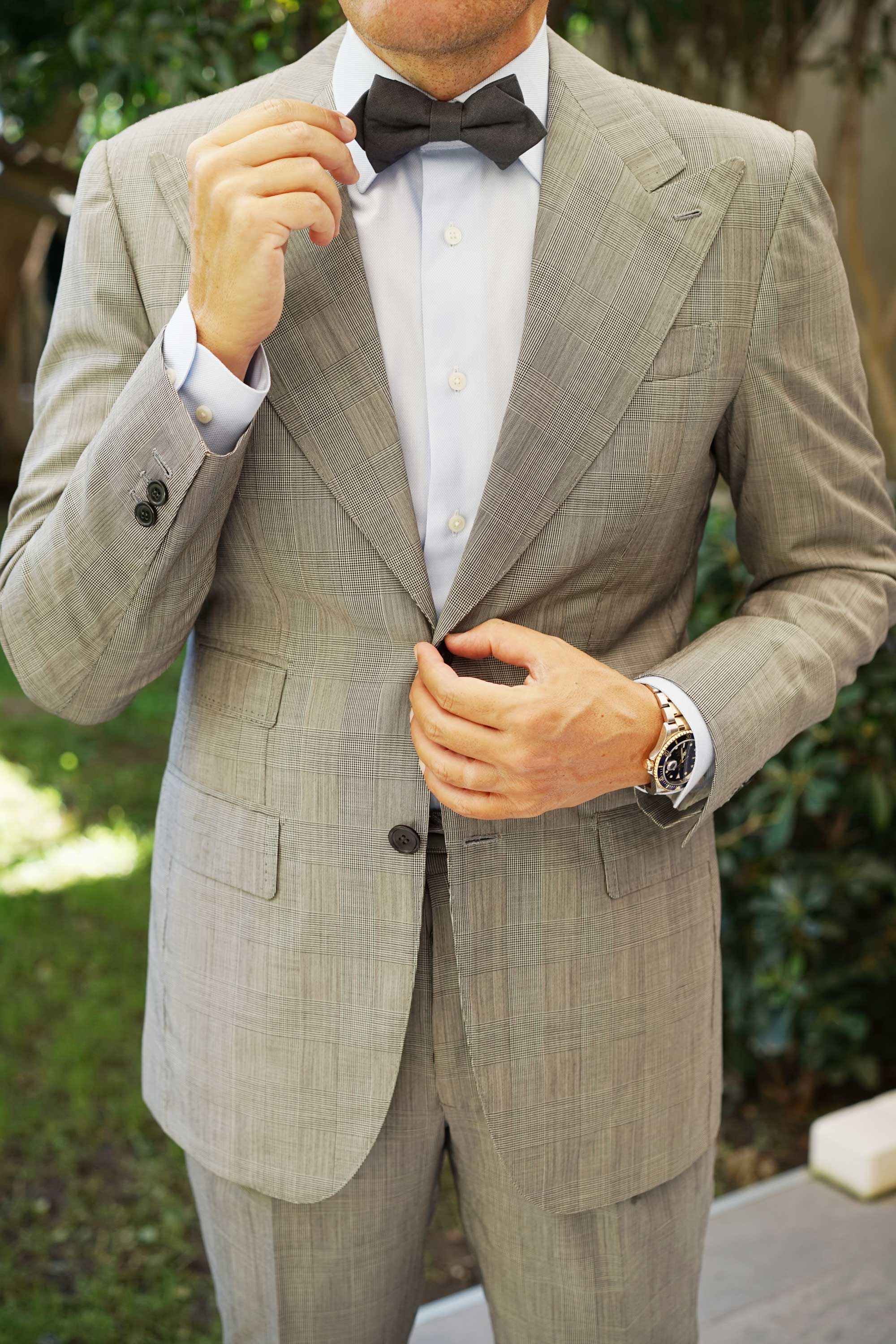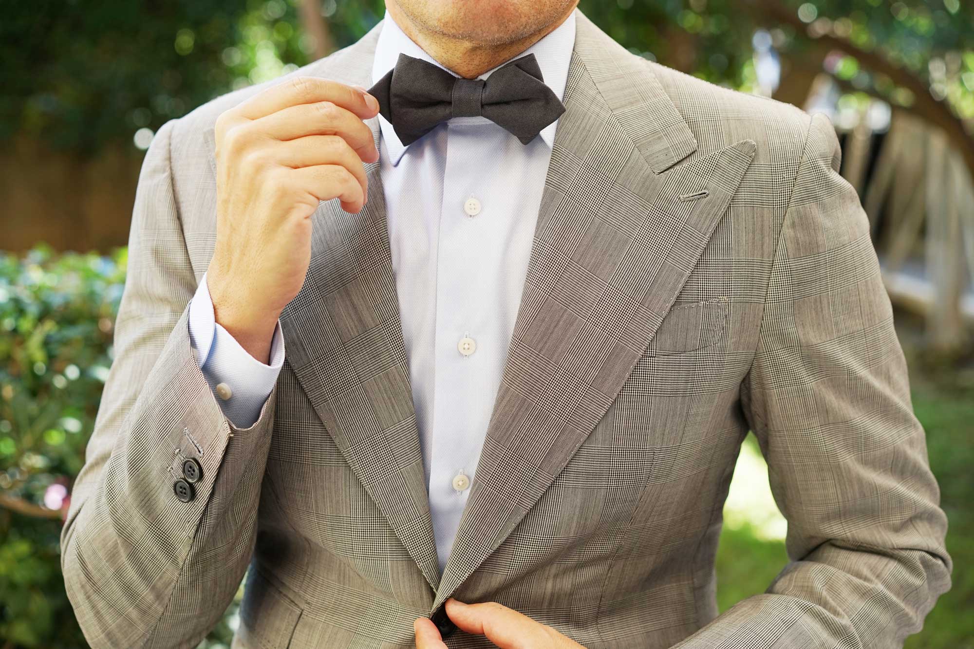 Suit up to sophisticated proportions with the Charcoal Grey Slub Linen Diamond Bow Tie by OTAA. Finessed with a deep, charcoal grey palette, this in-house design takes a paired back approach to style. True to OTAA's signature high-quality details; this Charcoal Grey Slub Linen Diamond Bow Tie is kitted out with a hand-stitched design and impeccably tailored slub linen fabric. Let its uneven grain gift your suits an enhanced element of texture. Perfect for weddings as well as your office tailoring rotation; the Charcoal Grey Slub Linen Diamond Bow Tie is as versatile as they come. Designed exclusively by the brothers at OTAA.