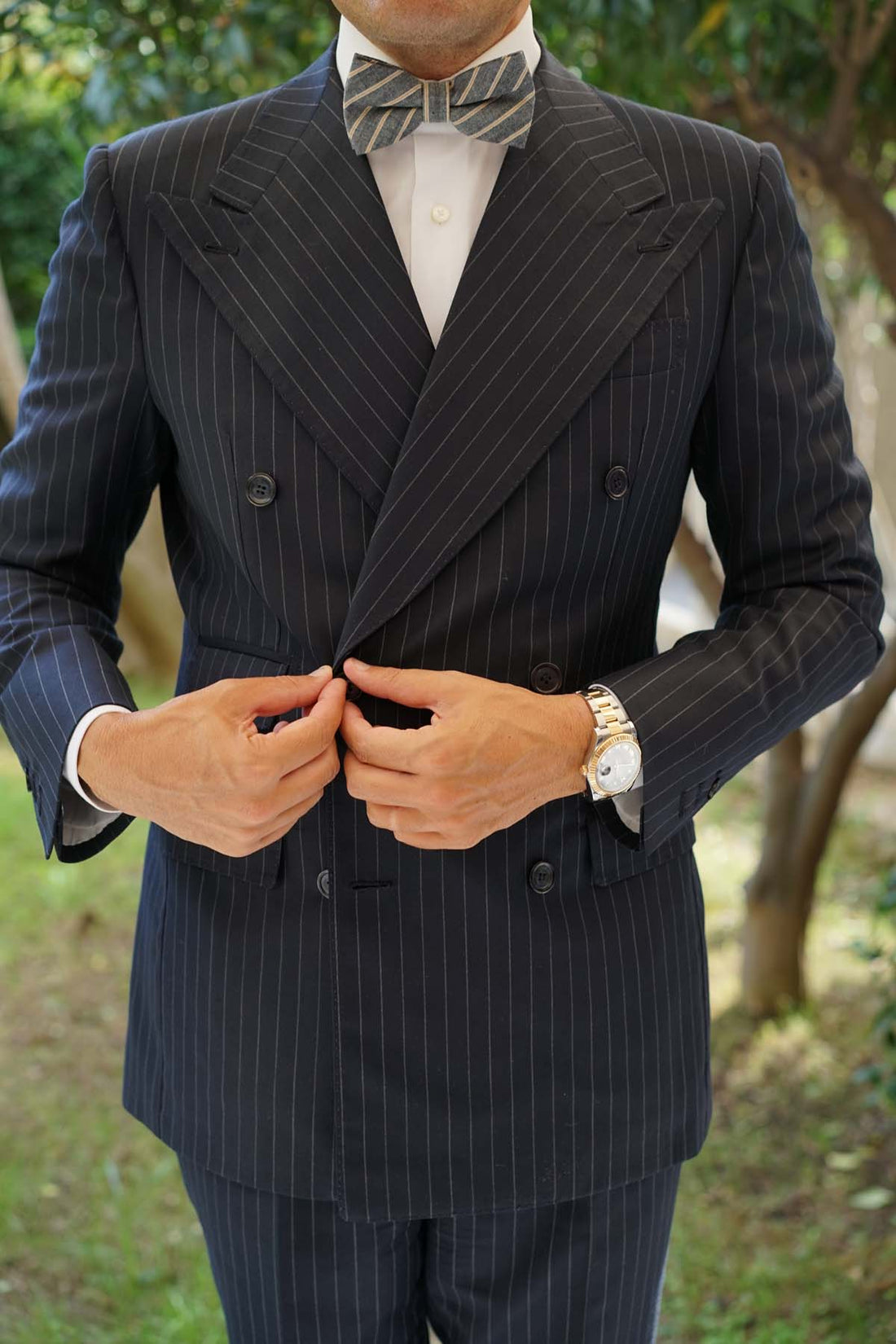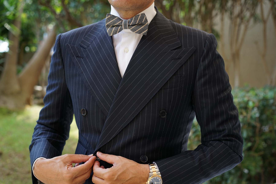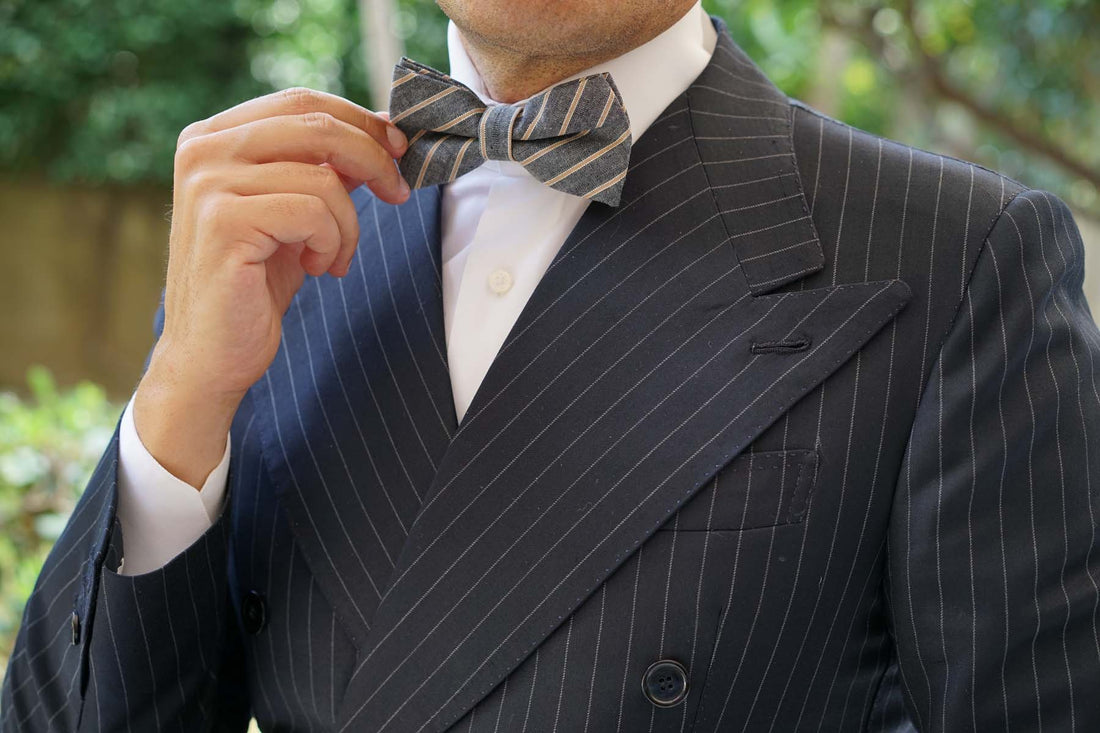 The Brothers at OTAA designed this Mustard Pinstripe Bow Tie in an old dusty art studio. They had to share the space with a monk who spoke sutras to them while they worked. It was on one auspicious night, when the wind was wildly howling, the monk walked over to their canvas and looked them in the eye. He spoke no words but the brothers knew he was thinking: “This Mustard Pinstripe Pre-tied Bowtie is the best damn thing I’ve ever seen. Your work here now is done.” It had taken them 5 years.